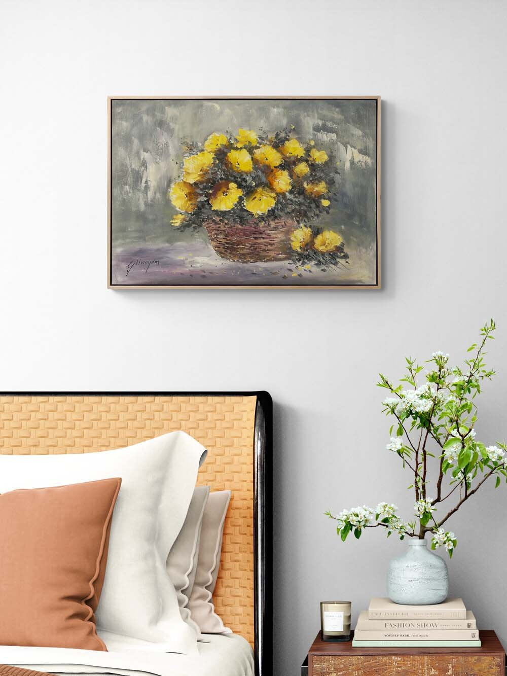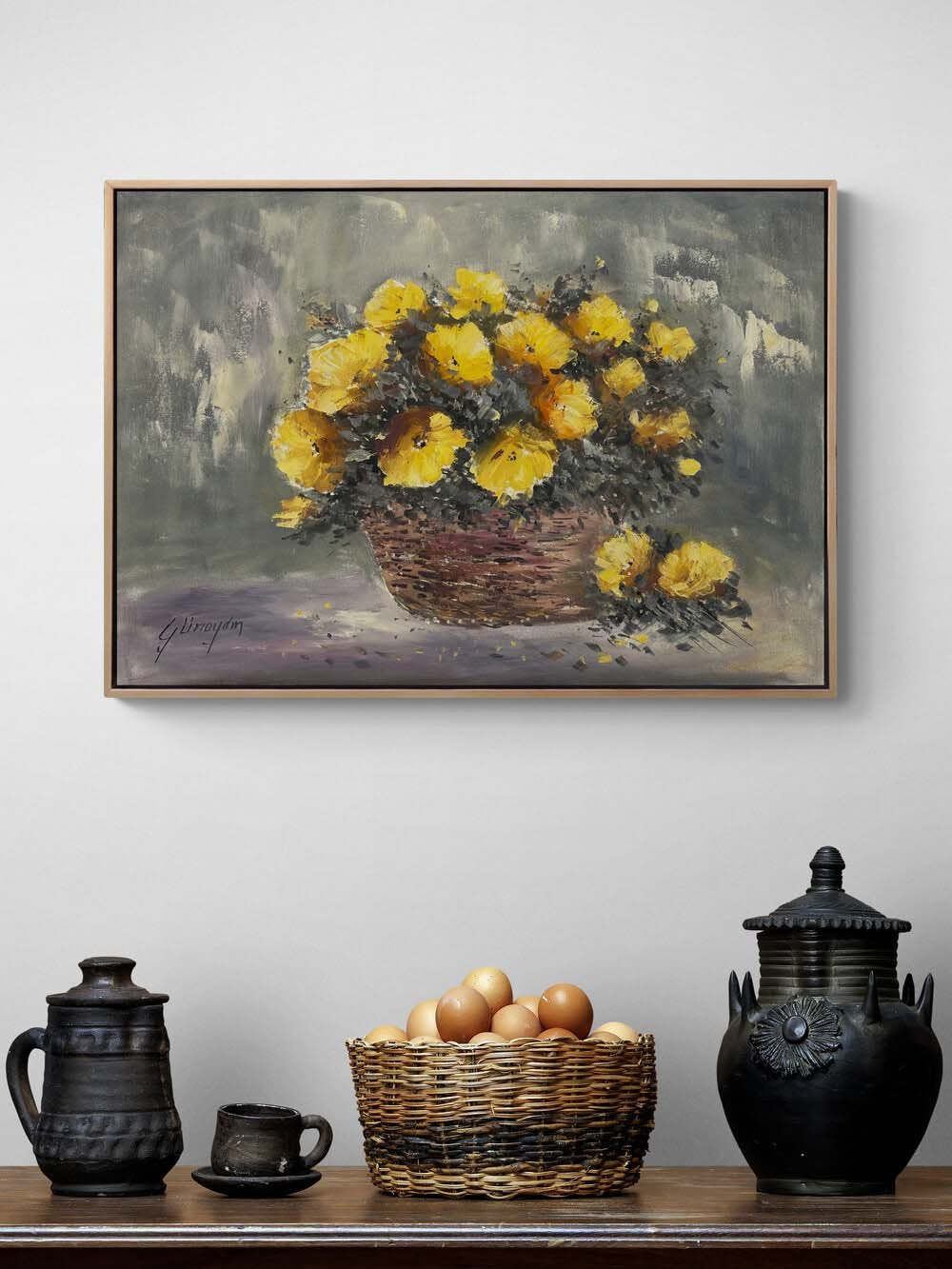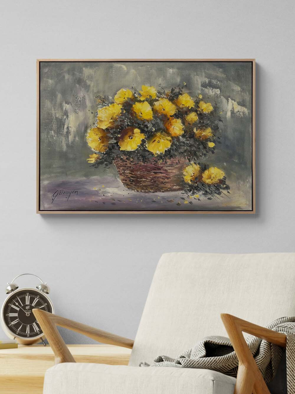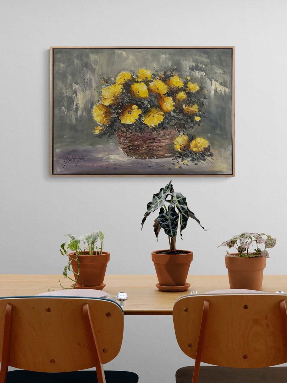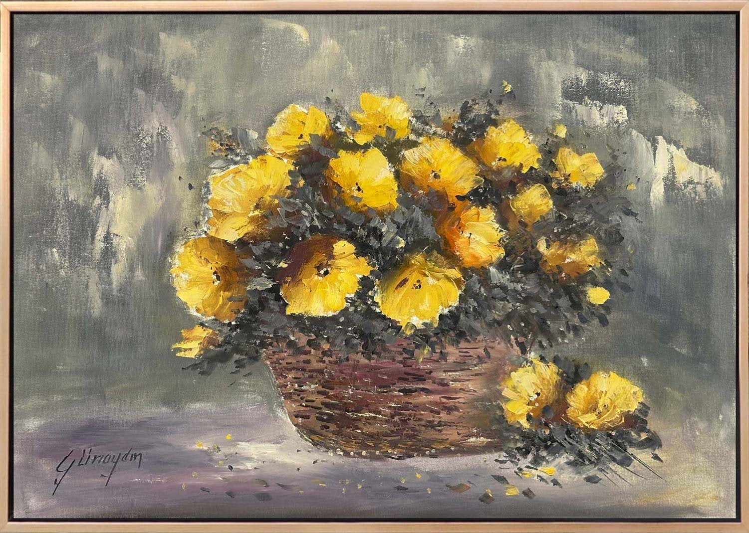 Sepet Açan Çiçekler Yağlı Boya Tablosu
