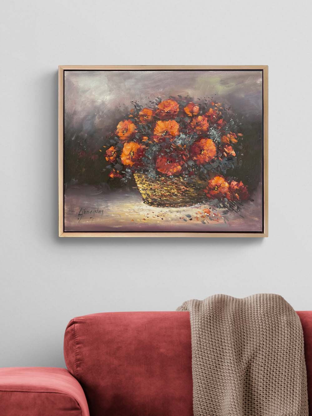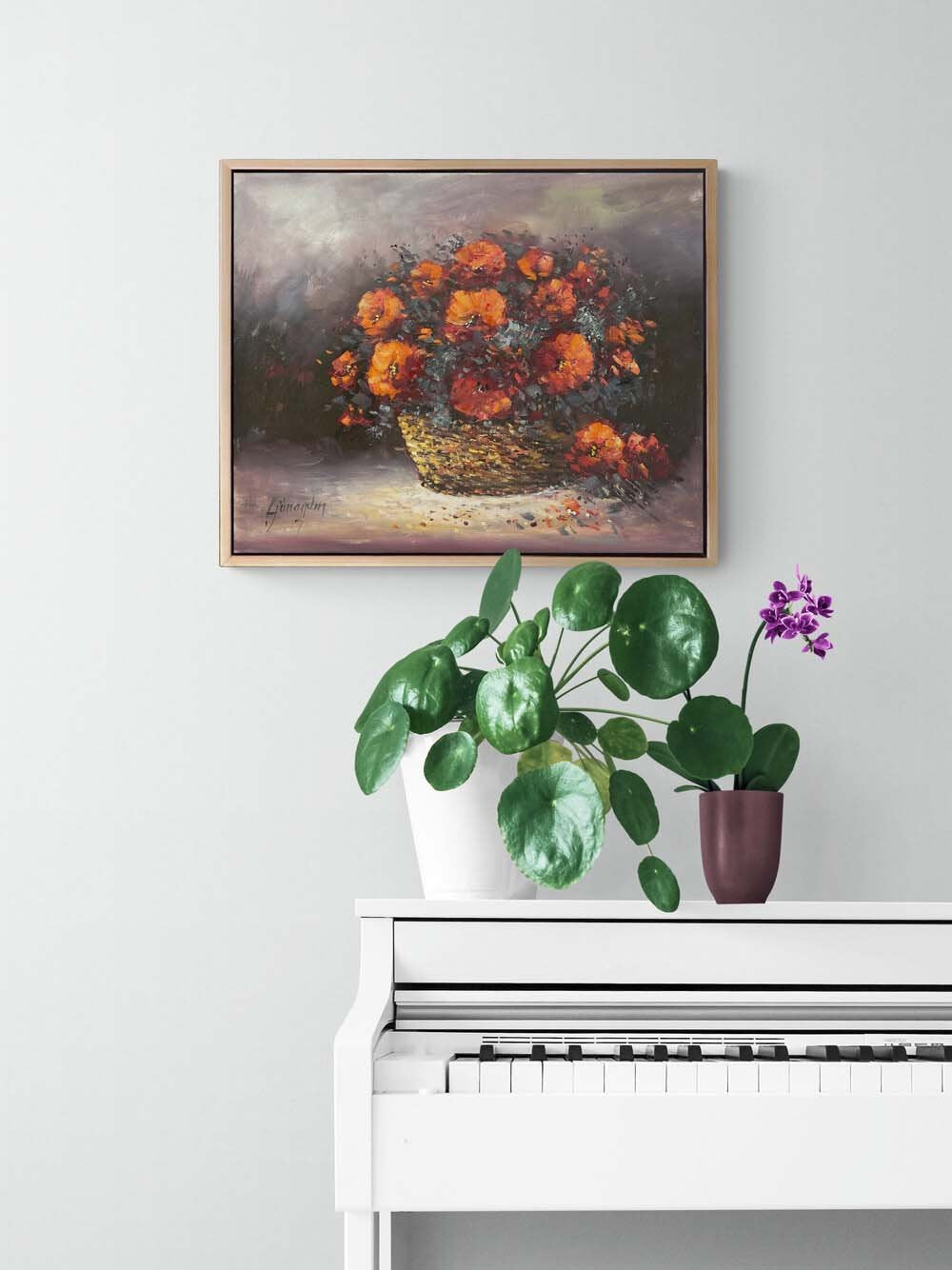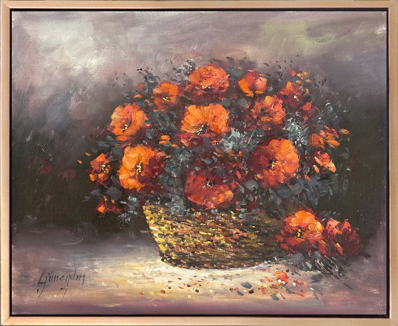 Sepette Kadife Çiçeği Yağlı Boya Tablosu