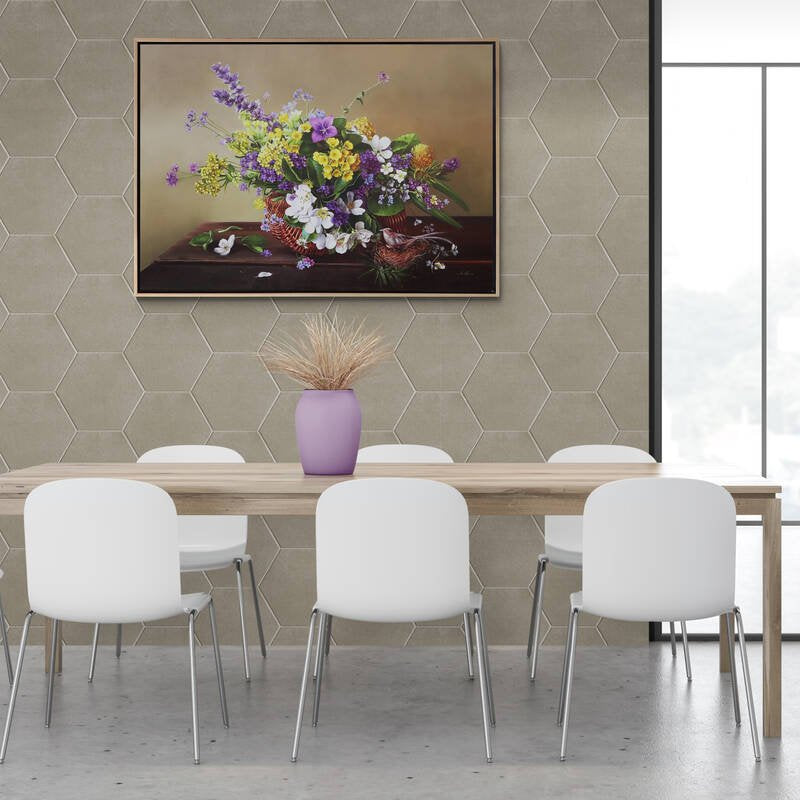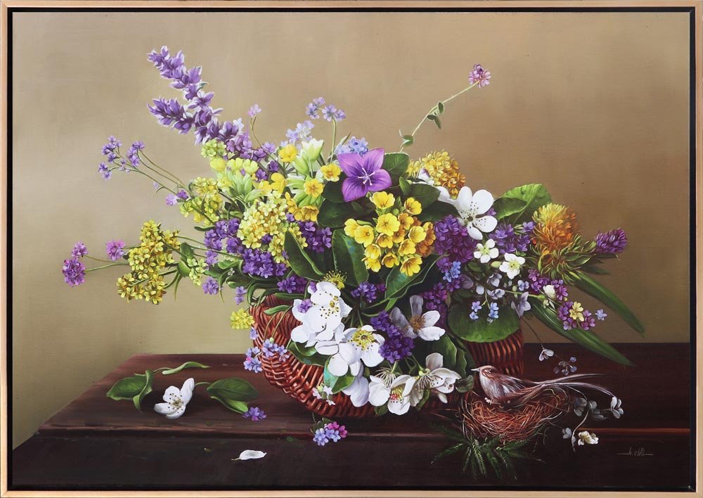 Sepette Kır Çiçekleri Siparişe Özel Yağlı Boya Tablo