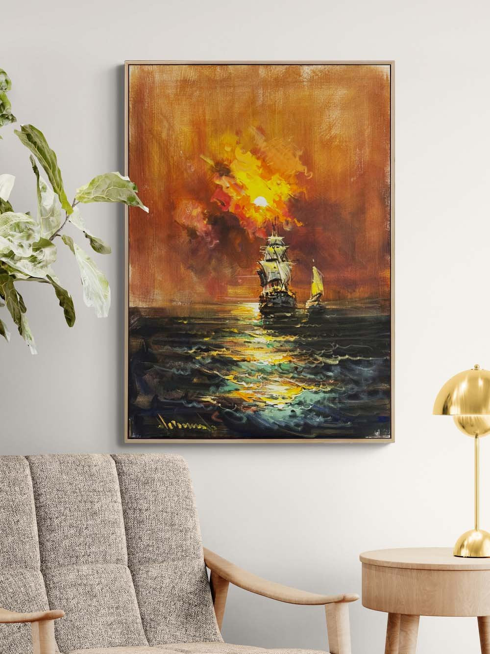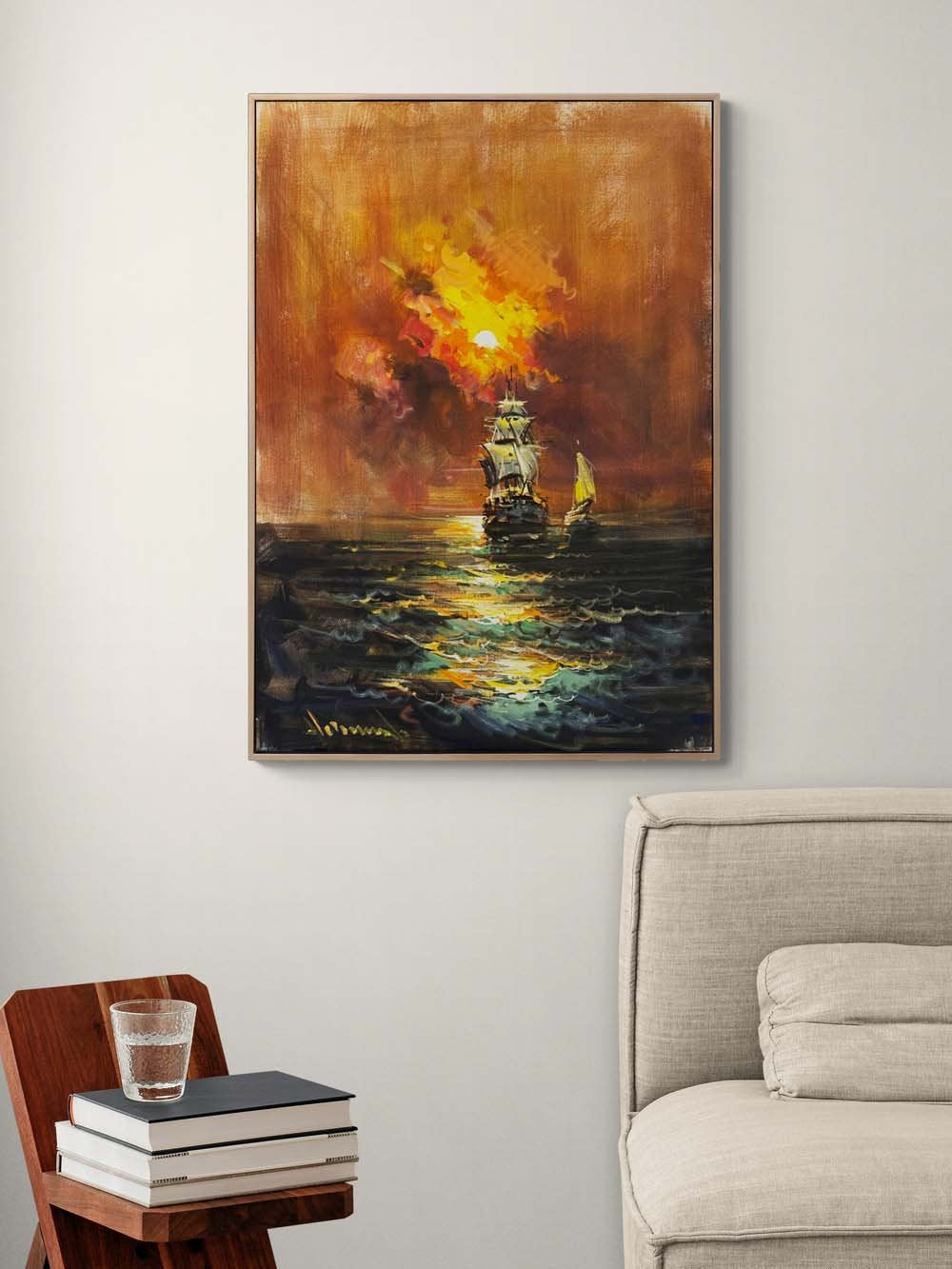 Sessiz Denizde Günbatımı Yağlı Boya Tablosu