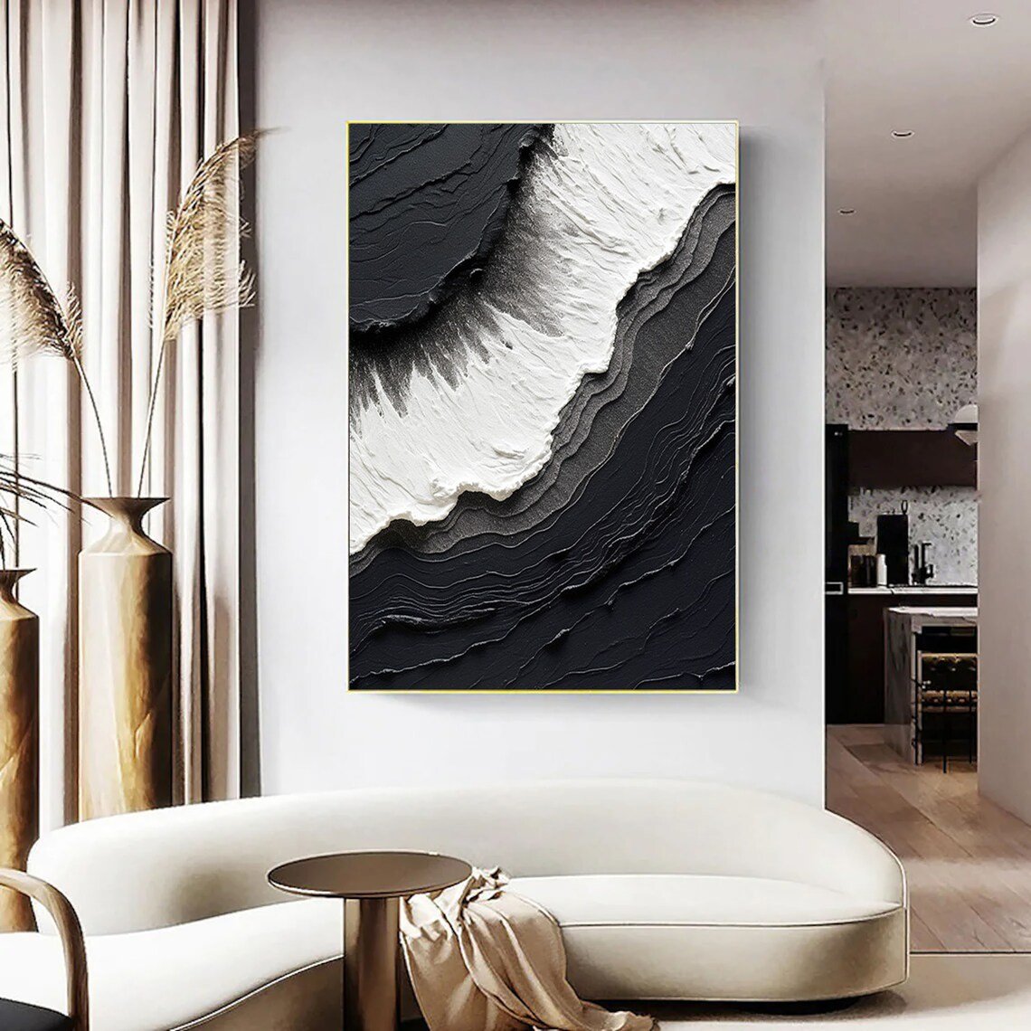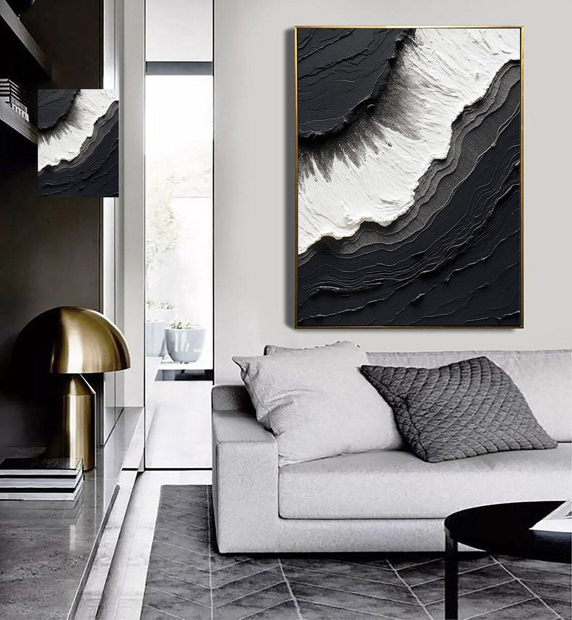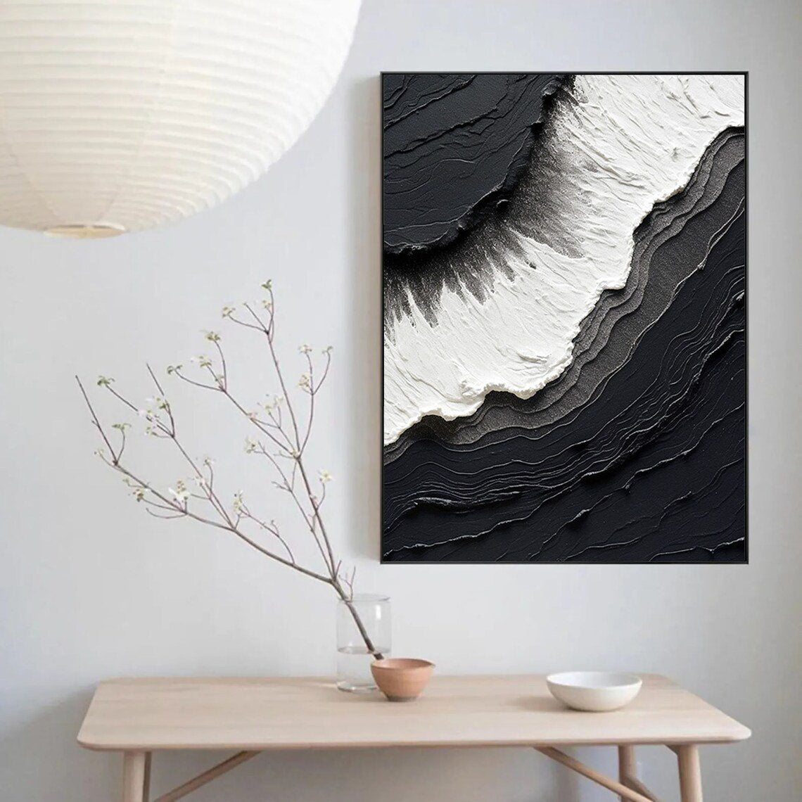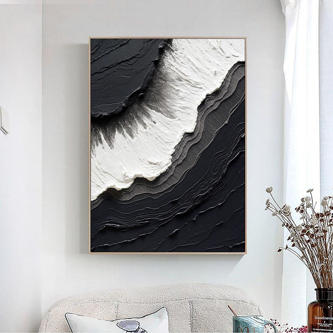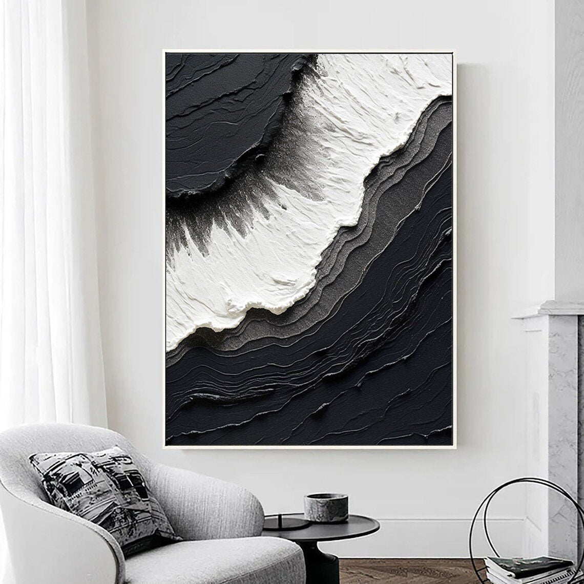 Siyah Beyaz Dalgalar Siparişe Özel Soyut Yağlı Boya Tablo
