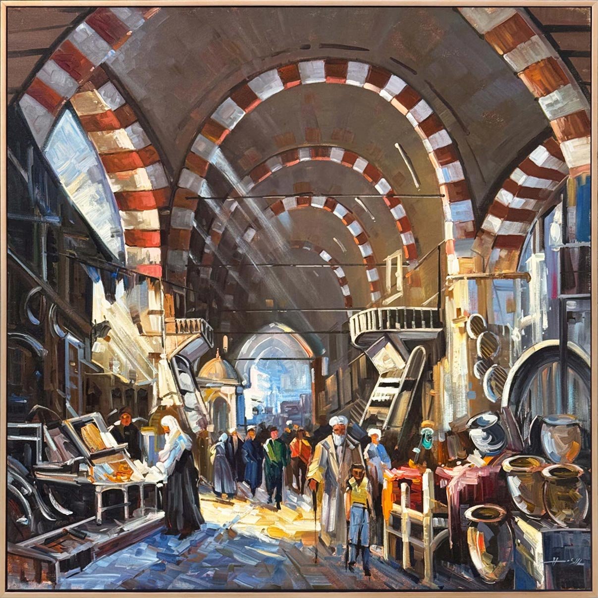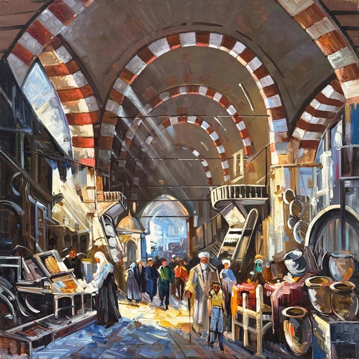 Tarihi Çarşının Yankıları Yağlı Boya Tablosu
