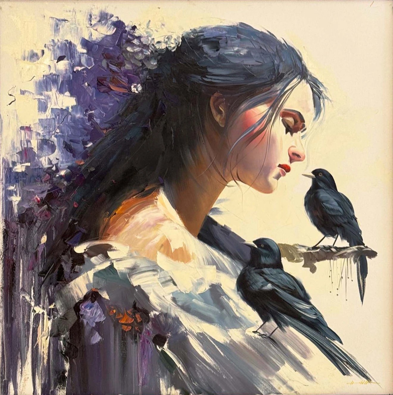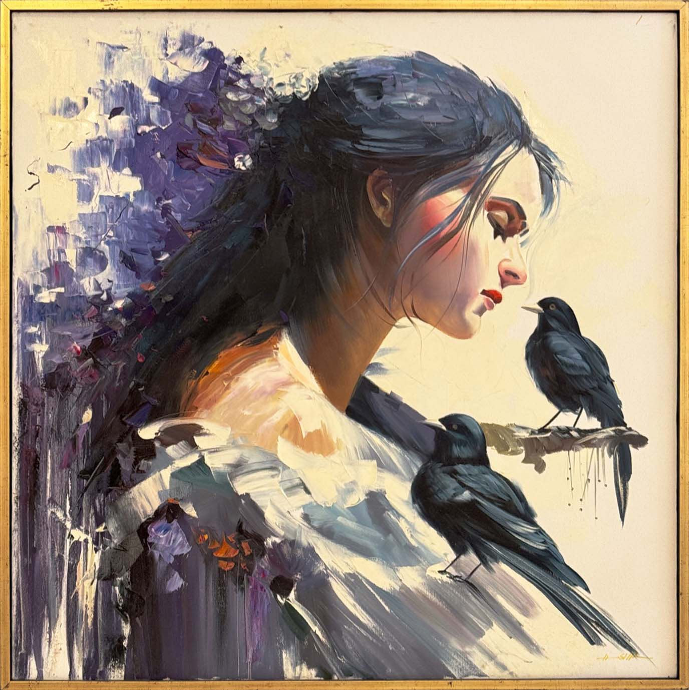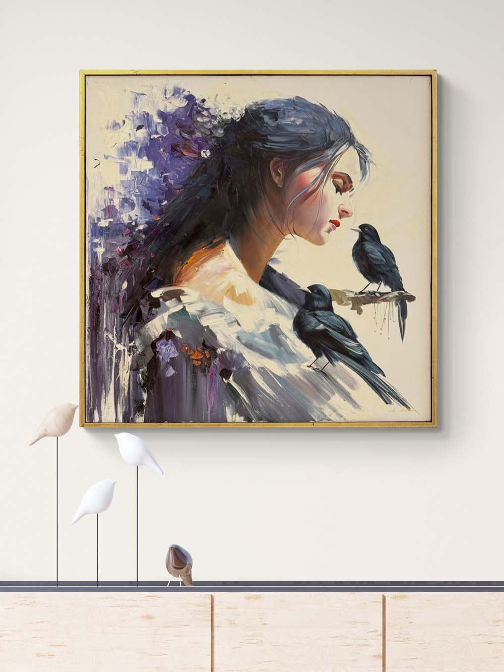Tınıların İçindeki Kadın Yağlı Boya Tablosu