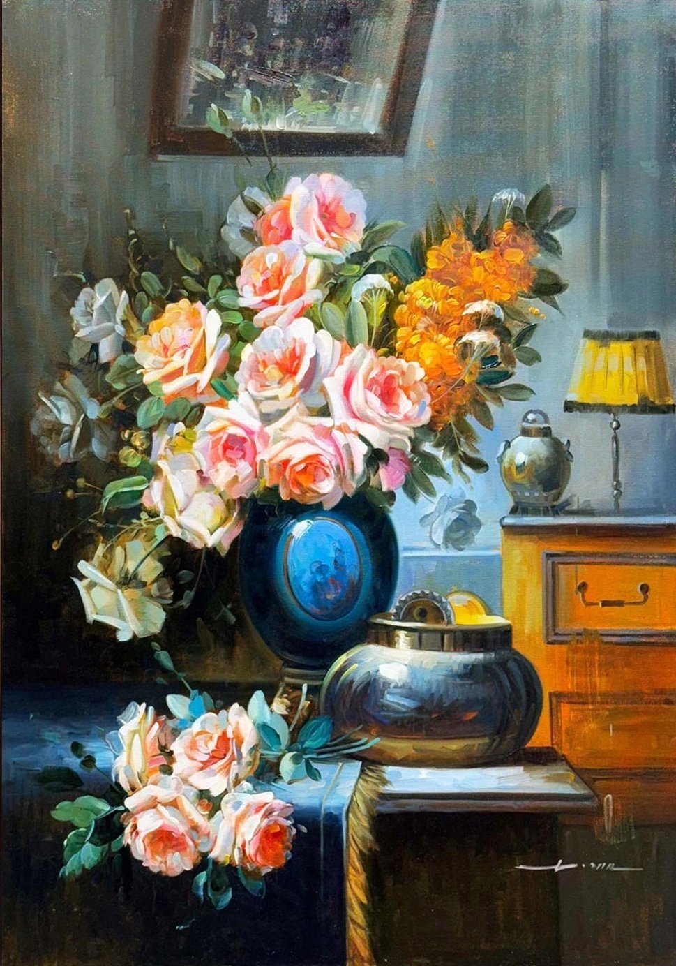 Unutulmuş Bir Buket Gül Yağlı Boya Tablosu