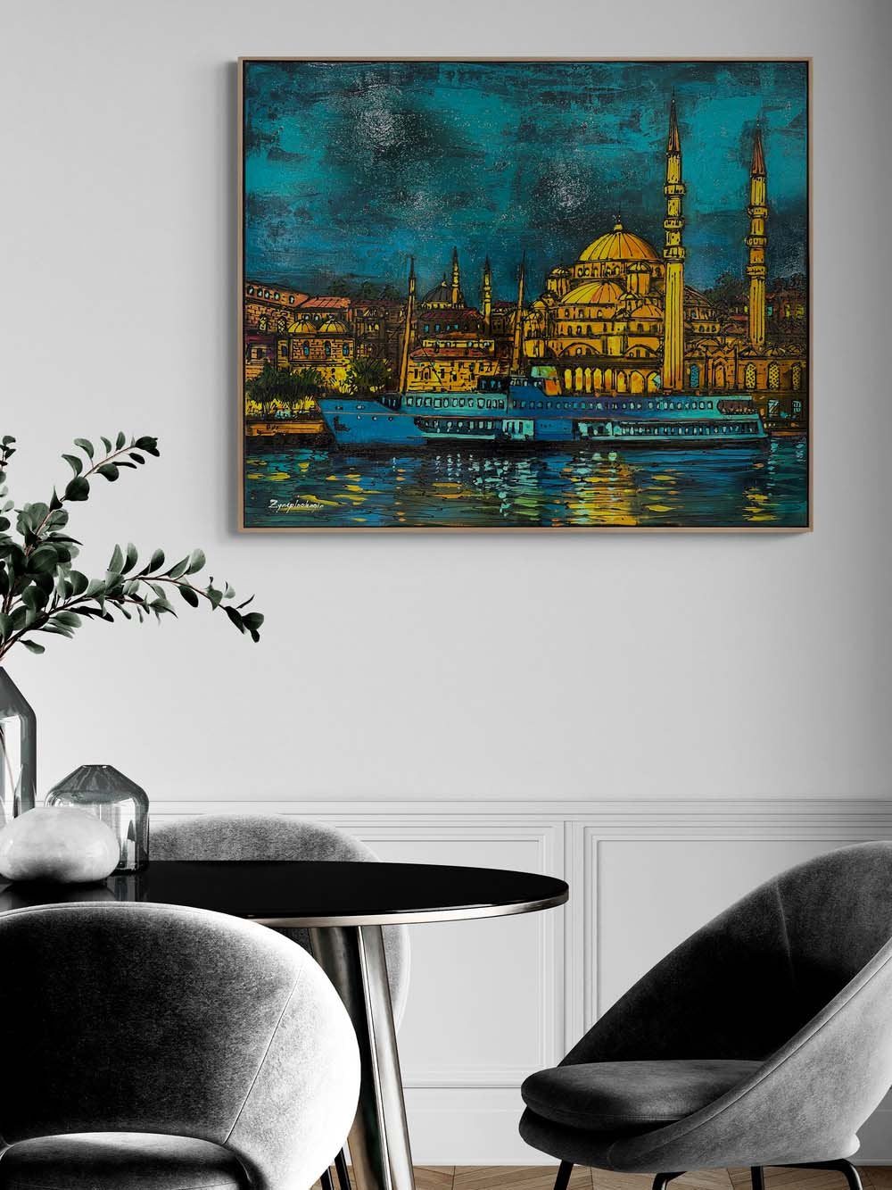 - Özel olarak üretilen 400 gr kalınlığında 1.sınıf sanatsal yağlıboya tuval üzerine çalışılır.