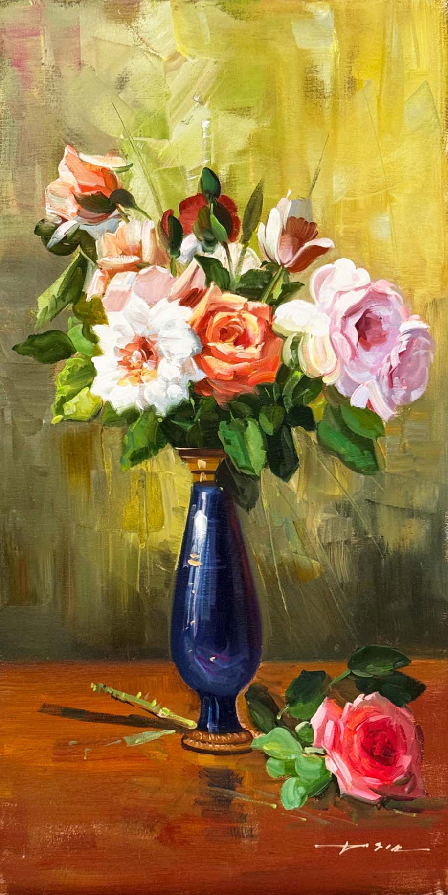 Vazoda Güllerin Şiiri Yağlı Boya Tablosu