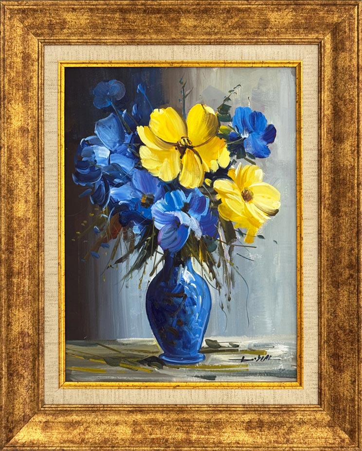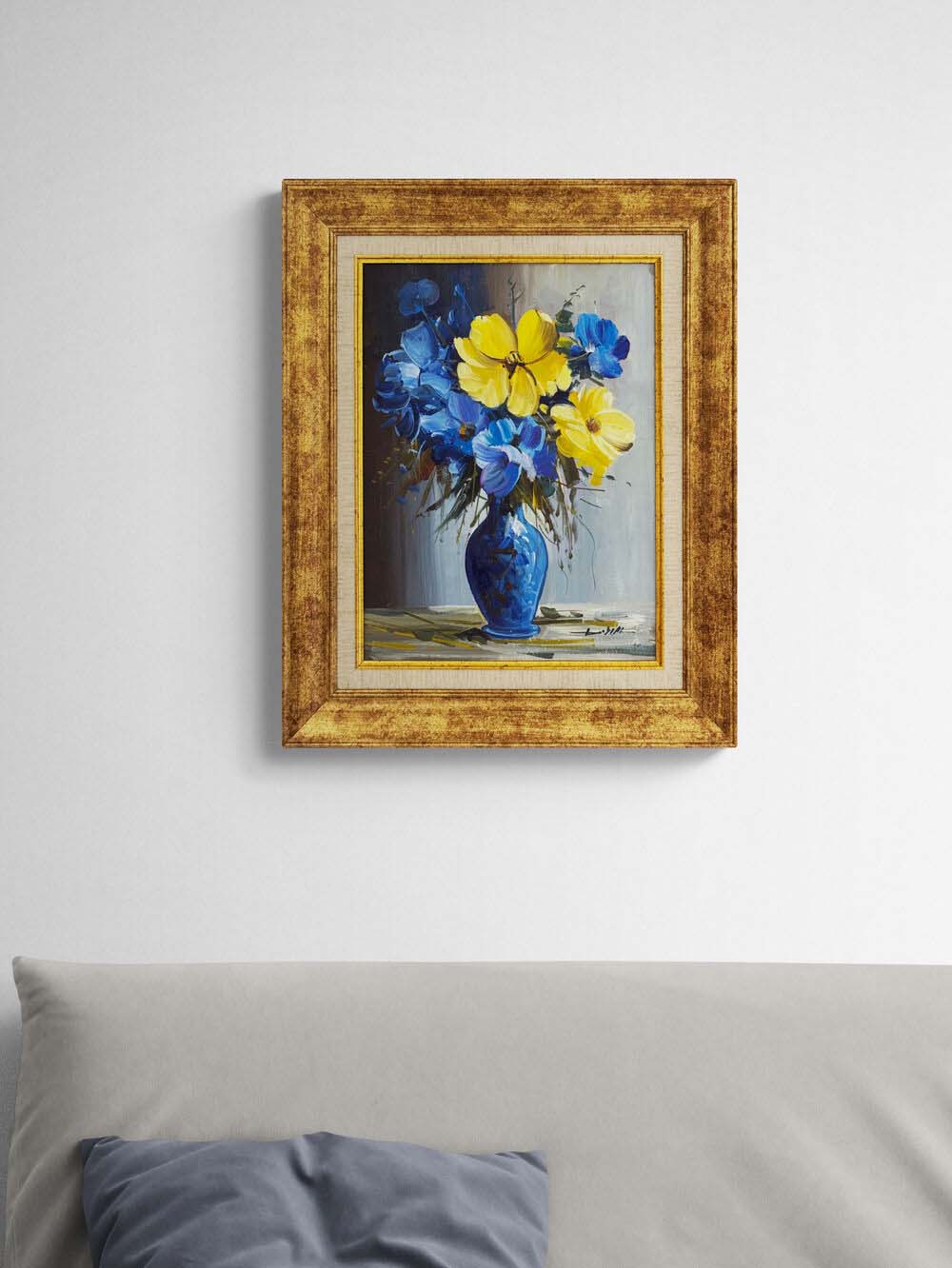Vazoda Mavi Çiçekler Yağlı Boya Tablosu