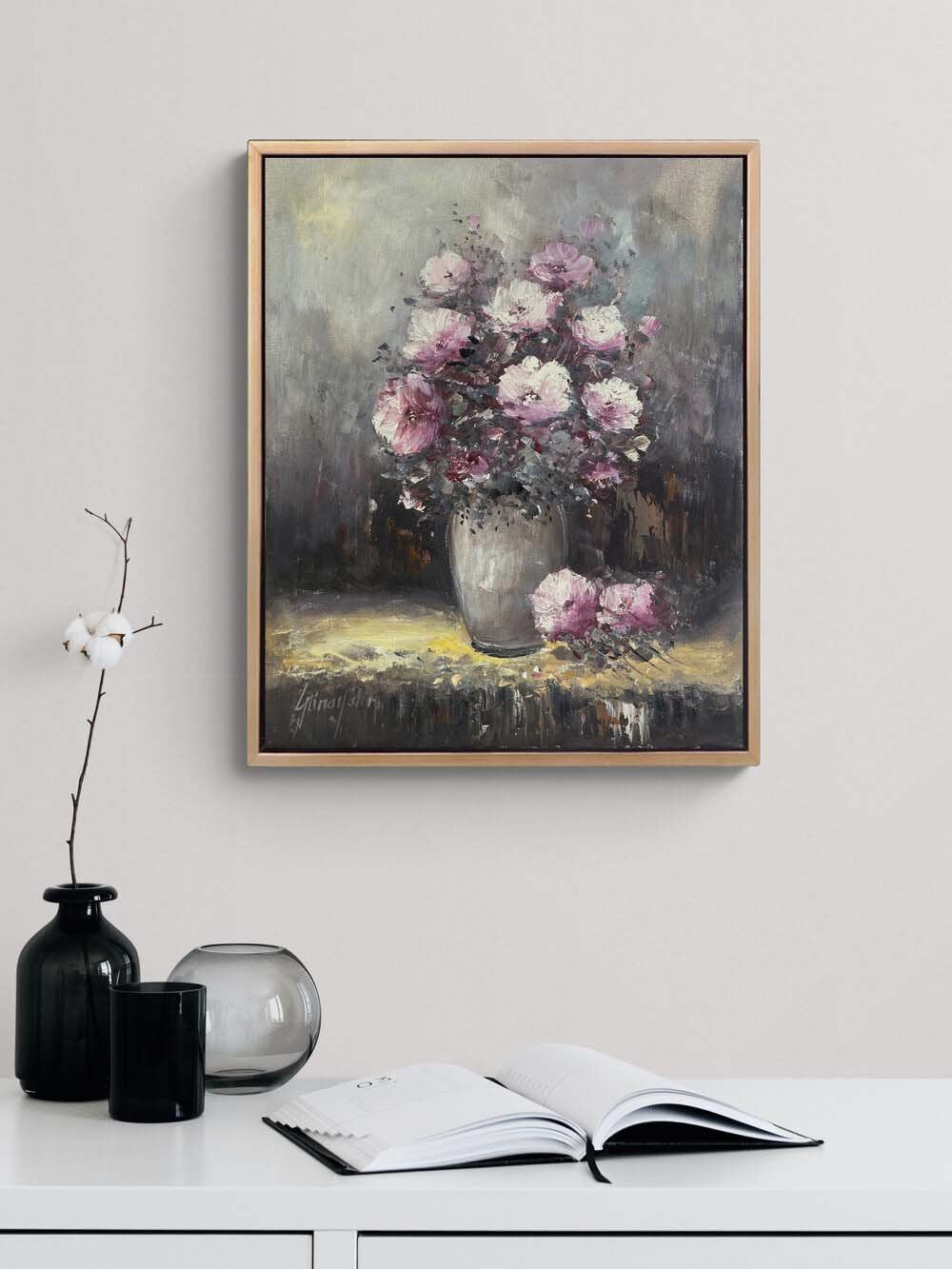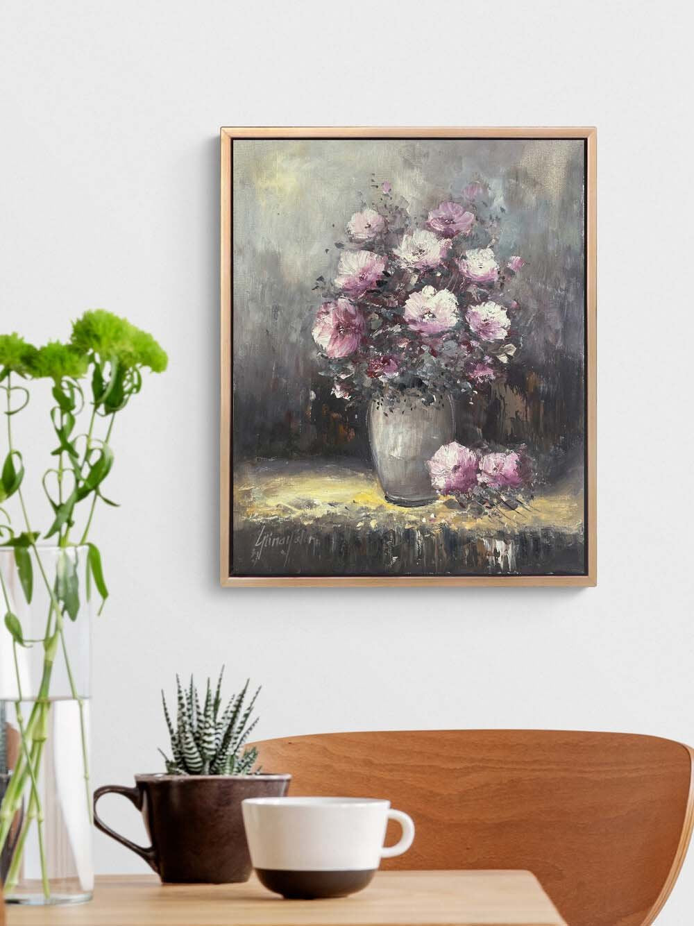 Vazodaki Pembe Bahar Yağlı Boya Tablosu