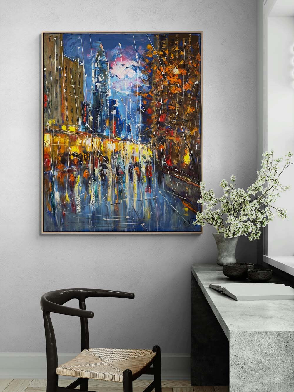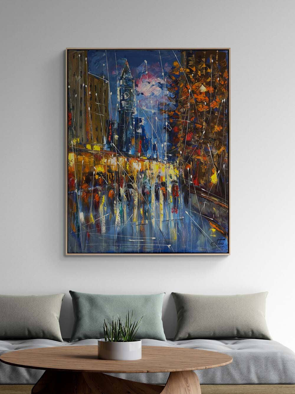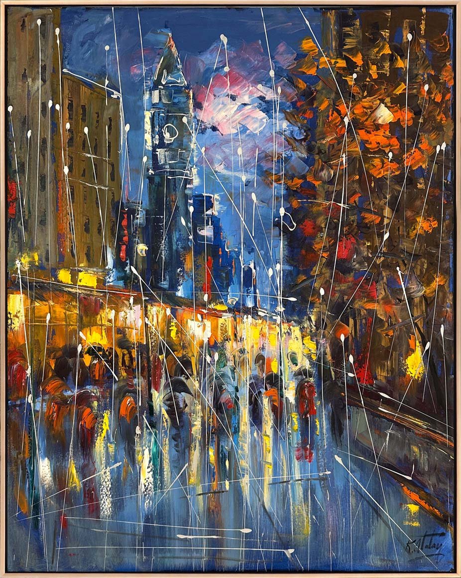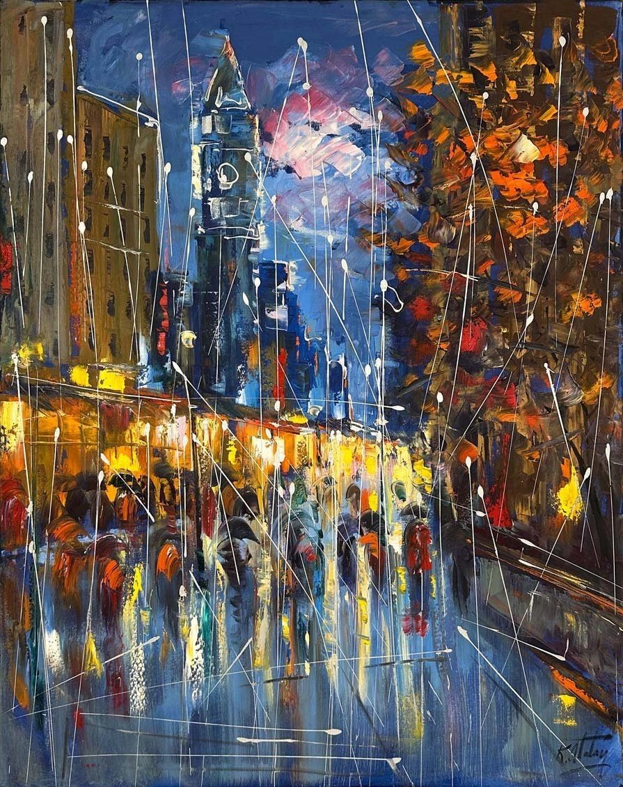 Yağmur Altında Adımlar Yağlı Boya Tablosu