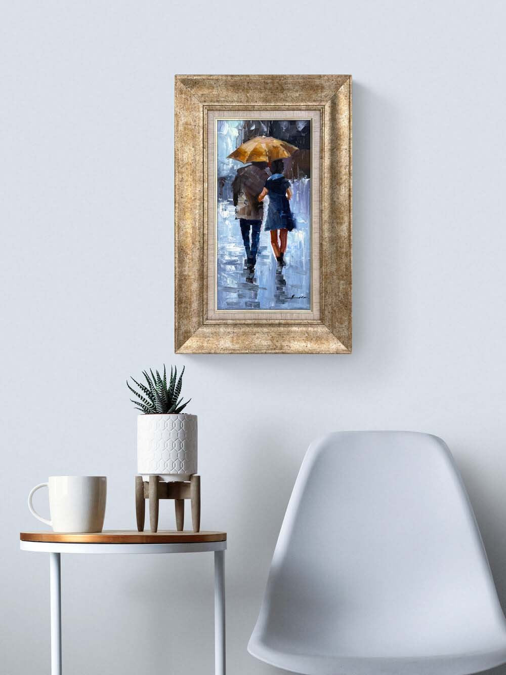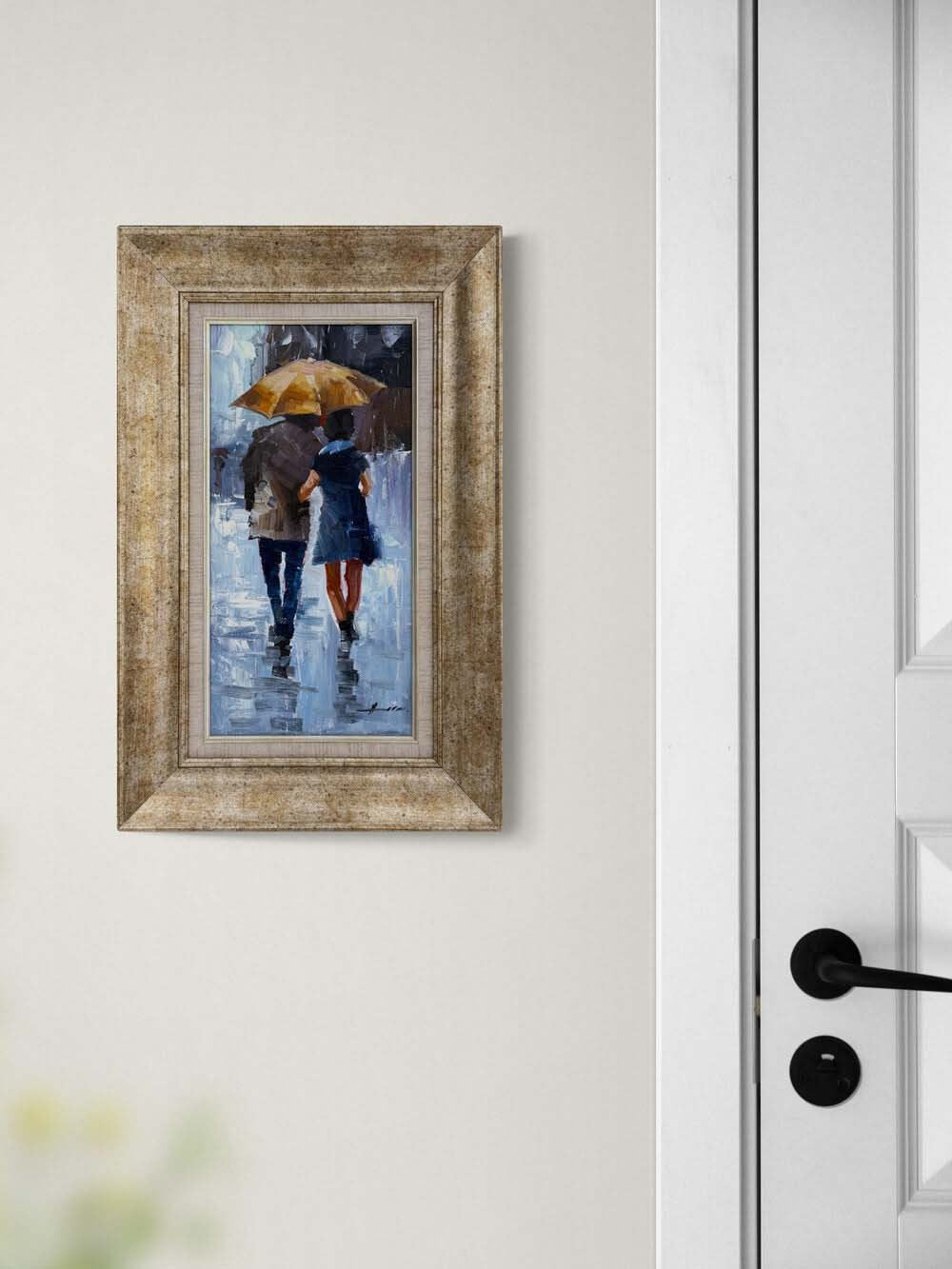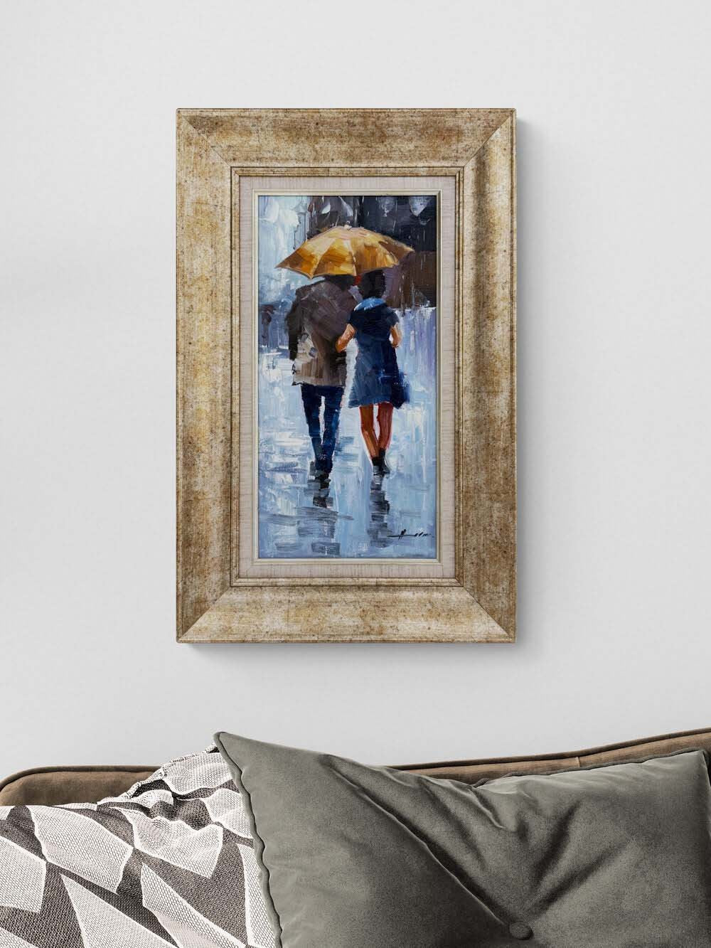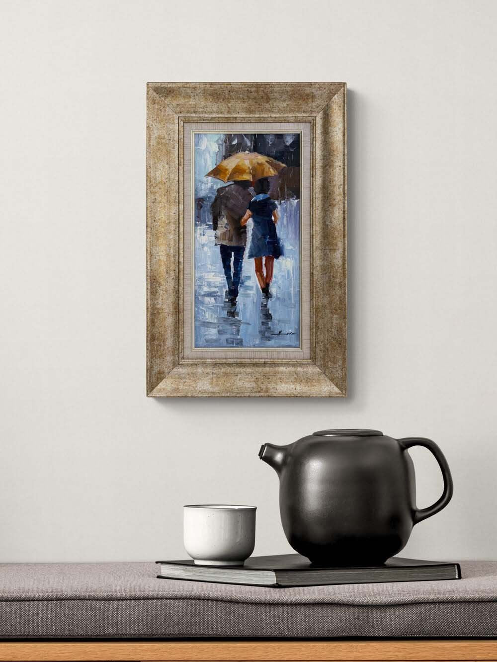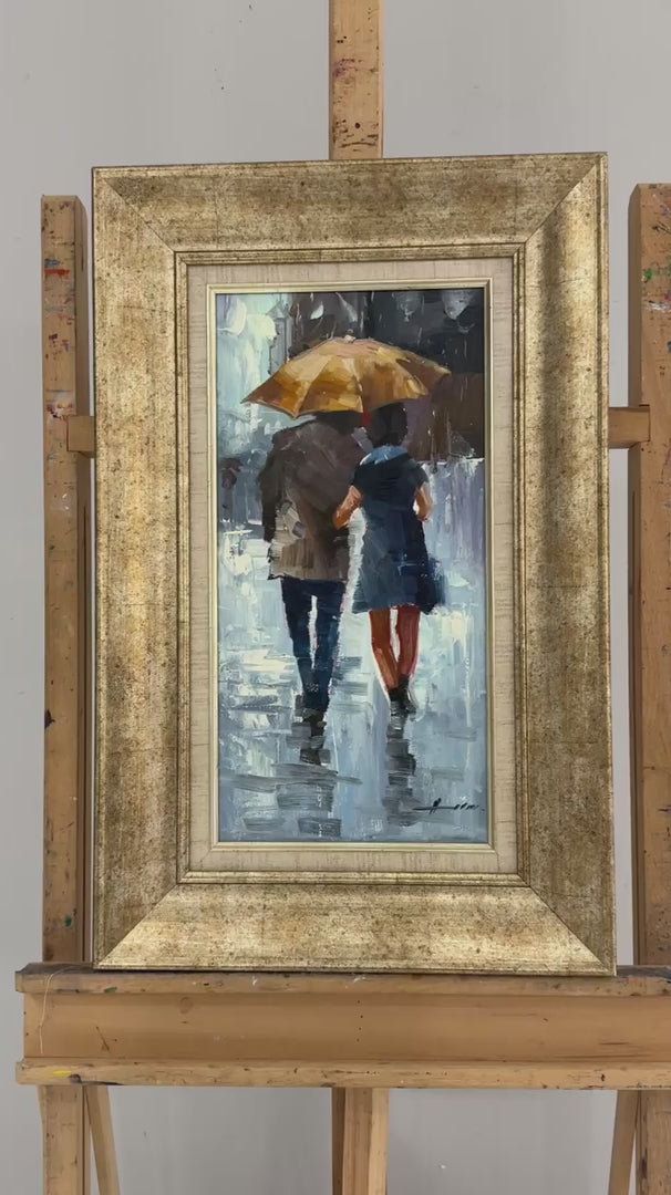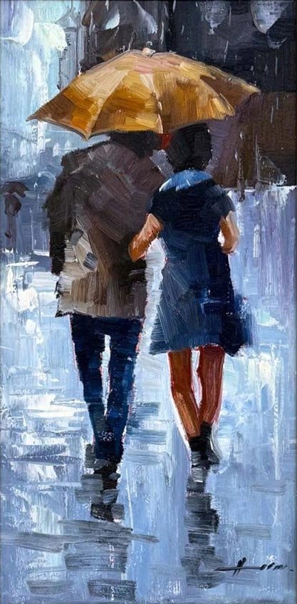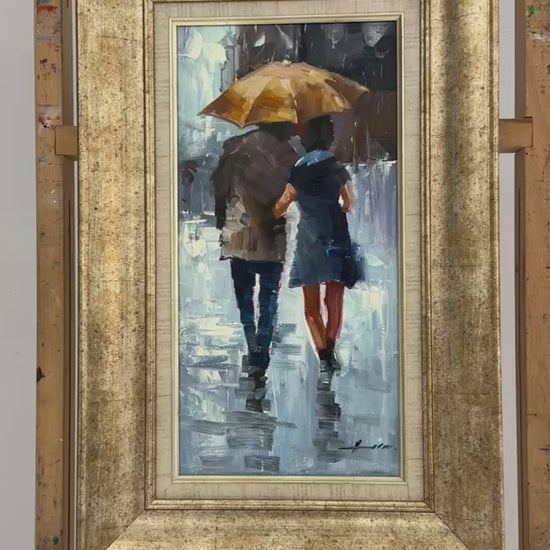 Yağmur Altında Aşıklar Yağlı Boya Tablosu