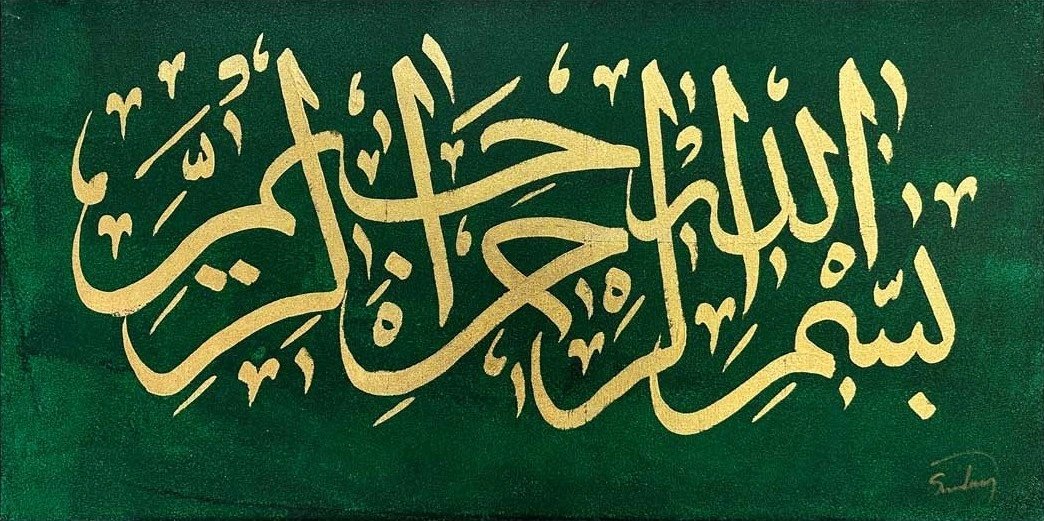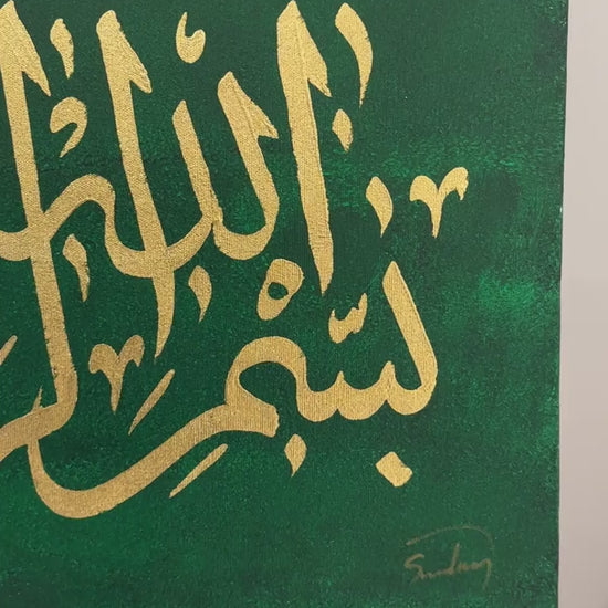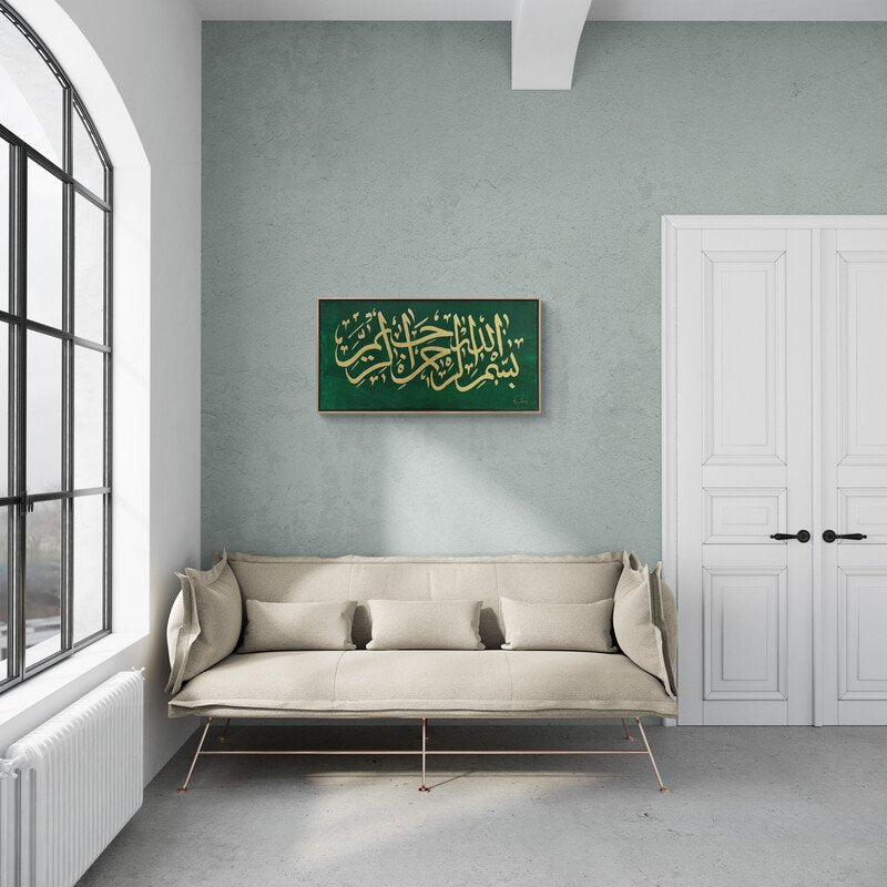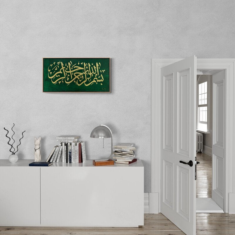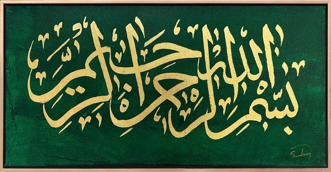 Yeşil Fonlu Besmele-i Şerif Yağlı Boya Hat Tablosu