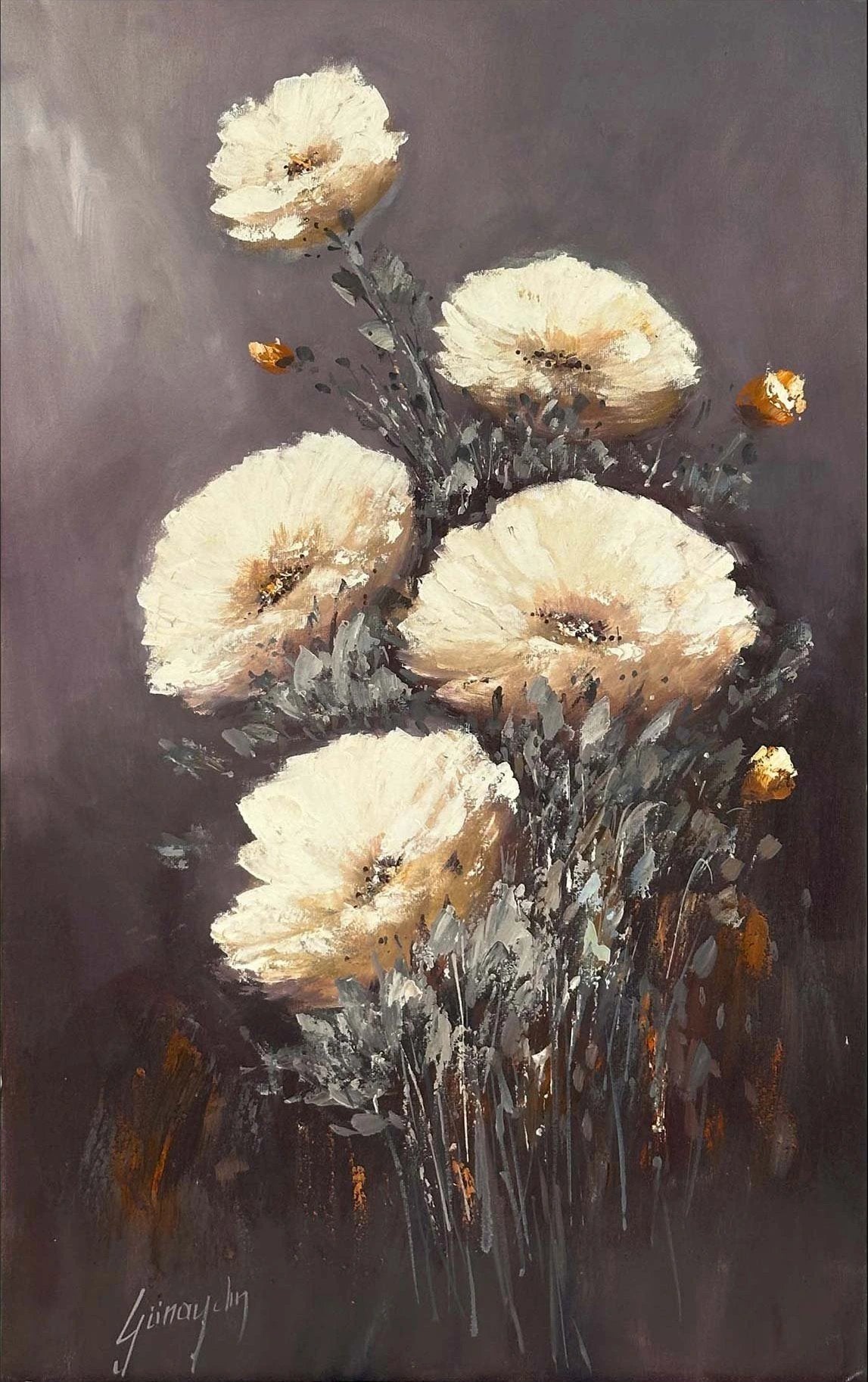 Zamana Açan Çiçekler Yağlı Boya Tablosu