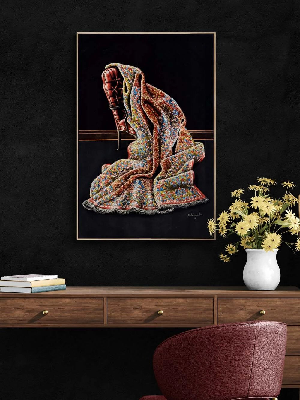 - Eserlerinizi uzun yıllar ilk günkü kalitesinde kullanmak istiyorsanız; asılan ortamın nem veya rutubet alan bir duvar olmamasına, gün içerisinde çok fazla güneş ışığı almamasına ve ısı kaynaklarının yakınında durmamasına dikkat ediniz.