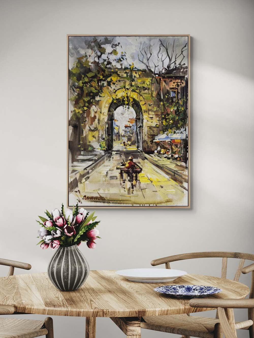 - Özel olarak üretilen 400 gr kalınlığında 1.sınıf sanatsal yağlıboya tuval üzerine çalışılır.