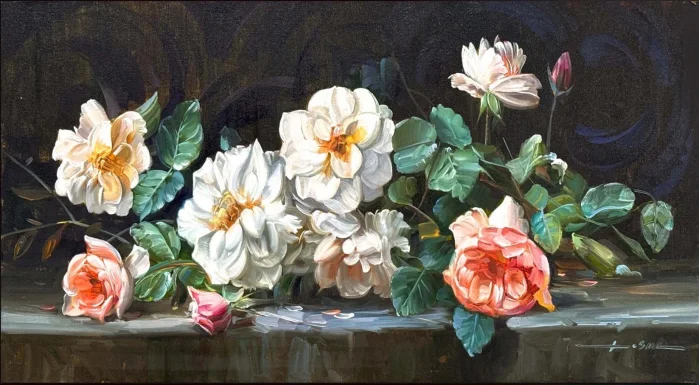 Aşkın İzleri Güller Yağlı Boya Tablosu