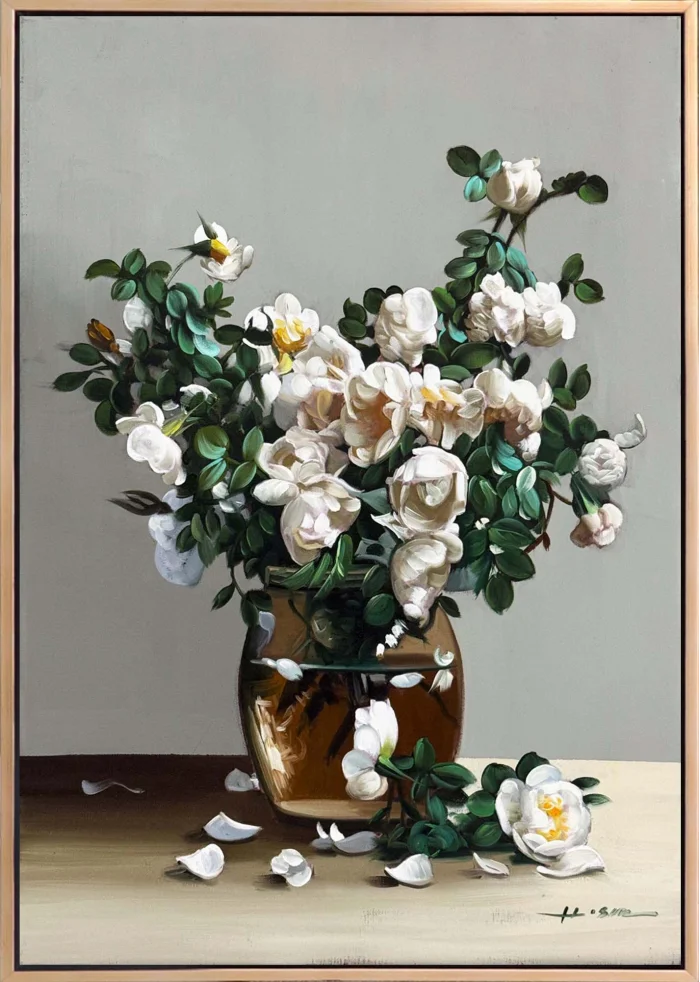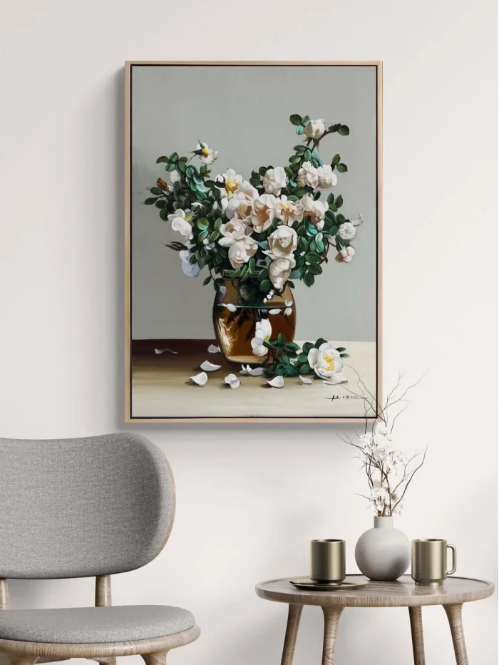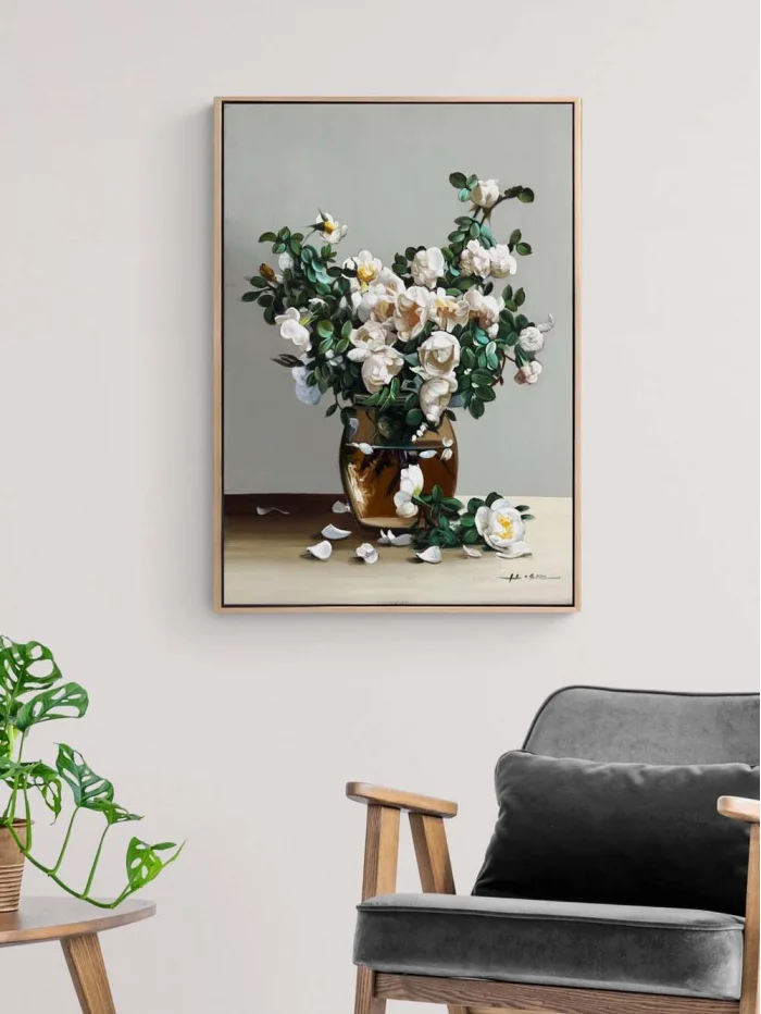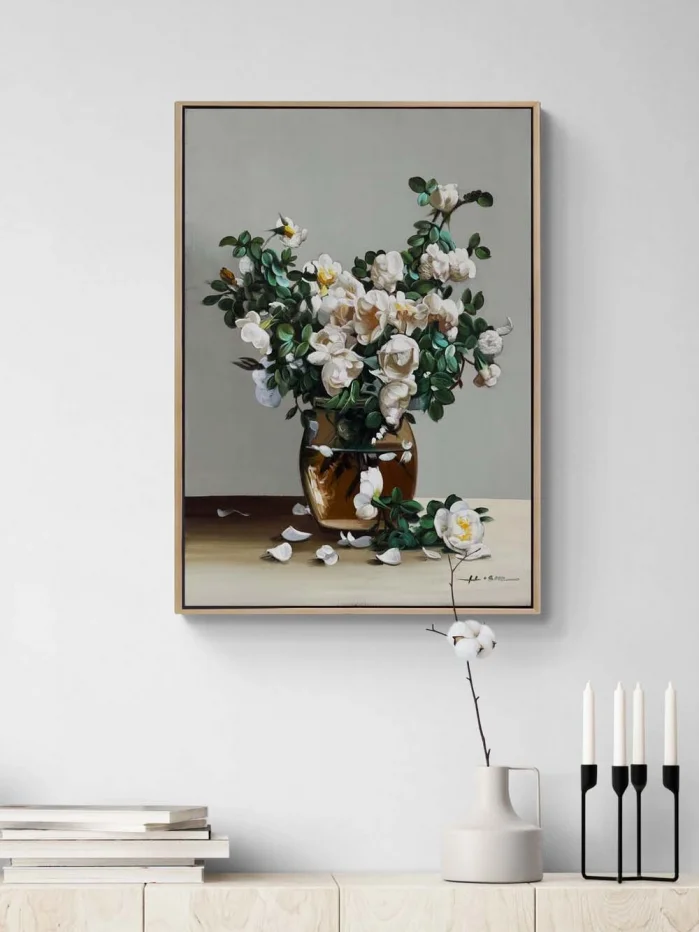 Beyaza Açan Manolya Yağlı Boya Tablosu