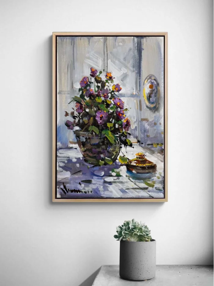 Bir Vazoda Çiçekler Yağlı Boya Tablosu