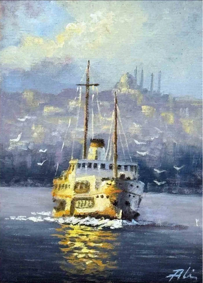 Boğazda Bir Yolculuk Yağlı Boya Tablosu