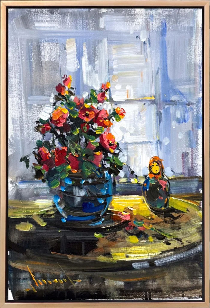 Cam Kenarında Çiçekler Yağlı Boya Tablosu