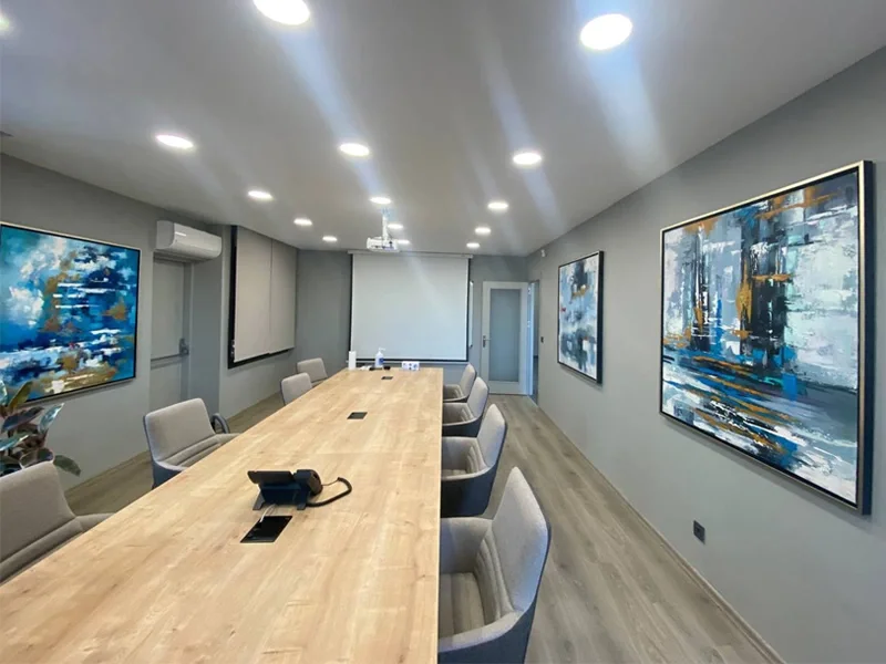 Yağlı boya tablolar ile sanat dolu, daha huzurlu ve güven veren veya tercihlerinize göre motivasyonunuzu arttıran bir ortamda çalışabilirsiniz. Şirketinizin müşterilerine karşı duruşunu güçlendirebilirsiniz. Şirket kurumsal kimliğine veya dekorasyonuna uygun renklerle çalışılması için sipariş yağlı boya soyut tablolar da talep edebilirsiniz.
