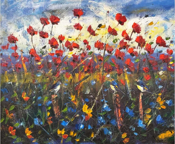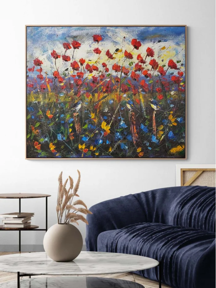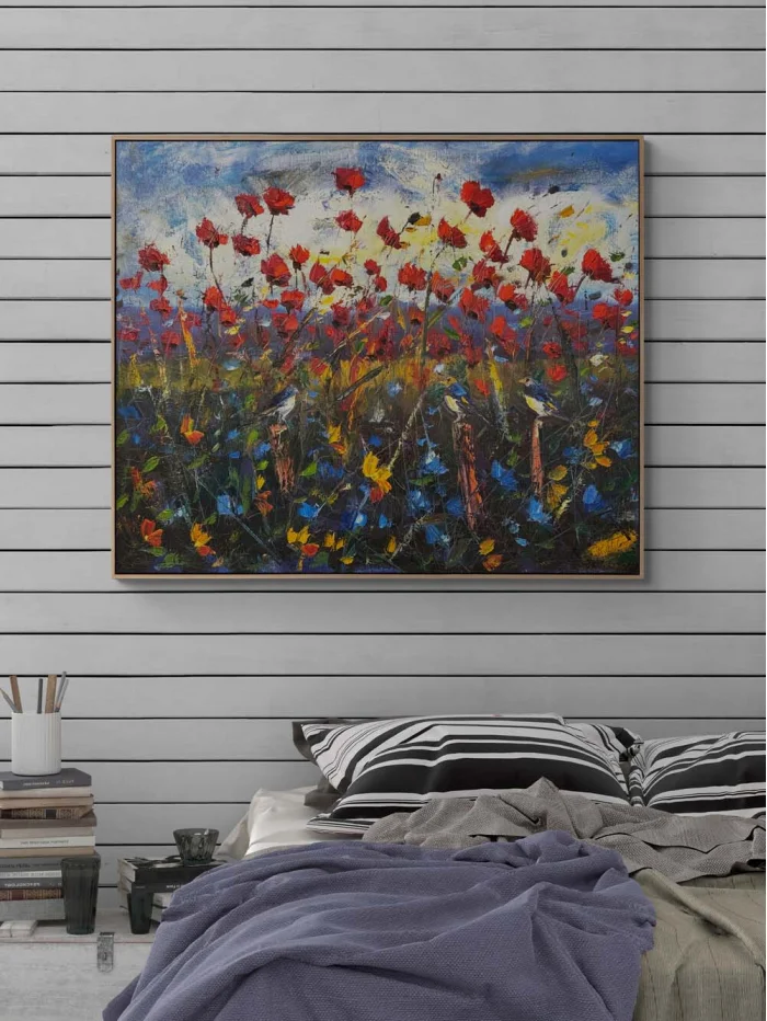 Dağ Eteğinde Gelincikler Yağlı Boya Tablosu
