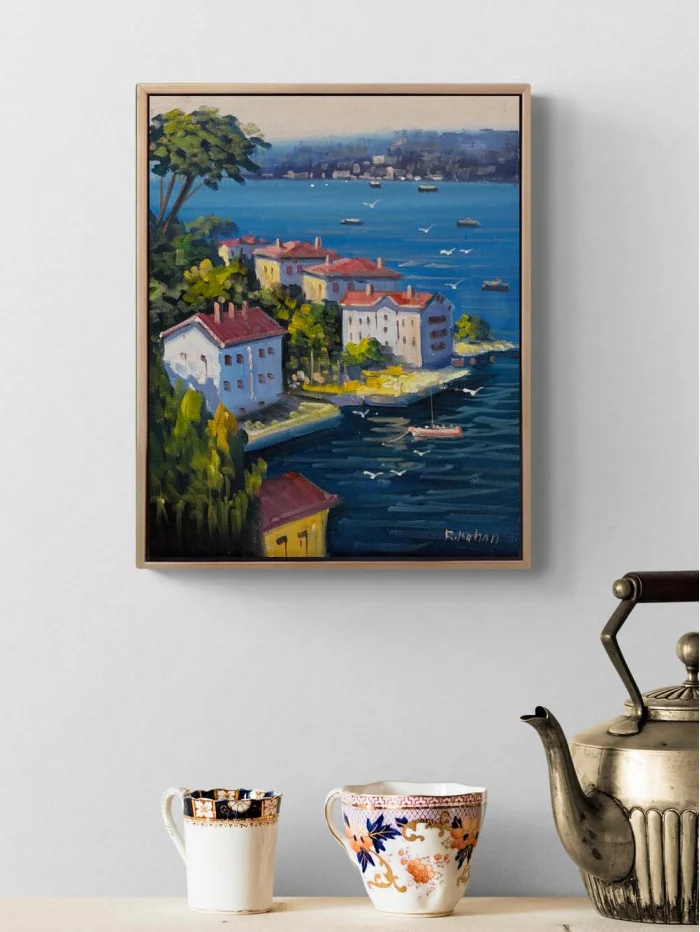 Denize Açılan Yalılar Yağlı Boya Tablosu