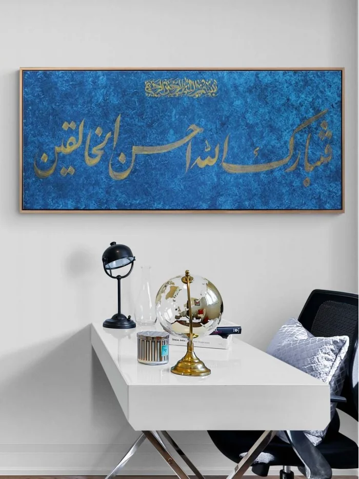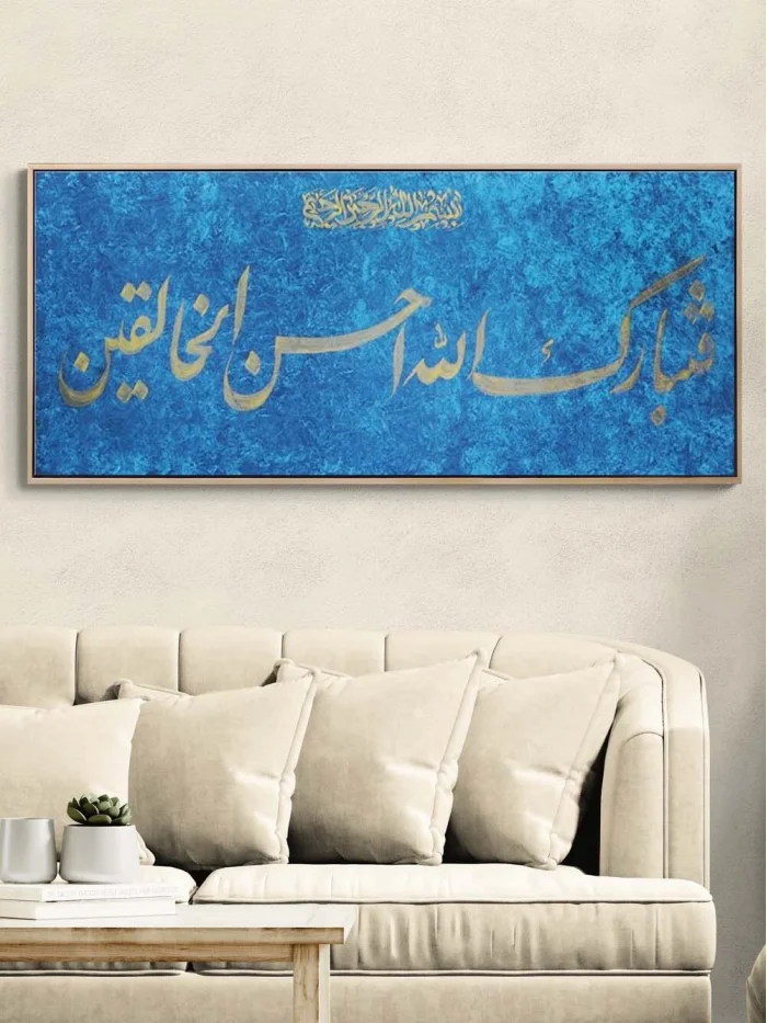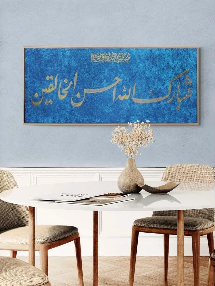 Fetebarek Allahu Ahsenü'l-Halıkîn | Yağlı Boya Hat Tablo