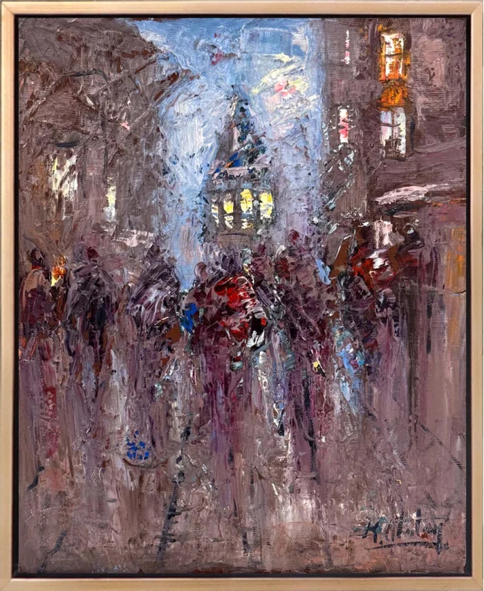 Galata'da Kalabalıklar Yağlı Boya Tablosu