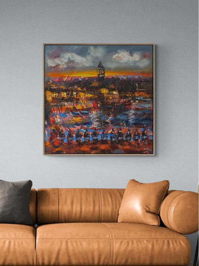 Galata Tower and Music Oil Painting