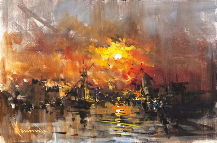 Harbor at Sunset Oil Painting