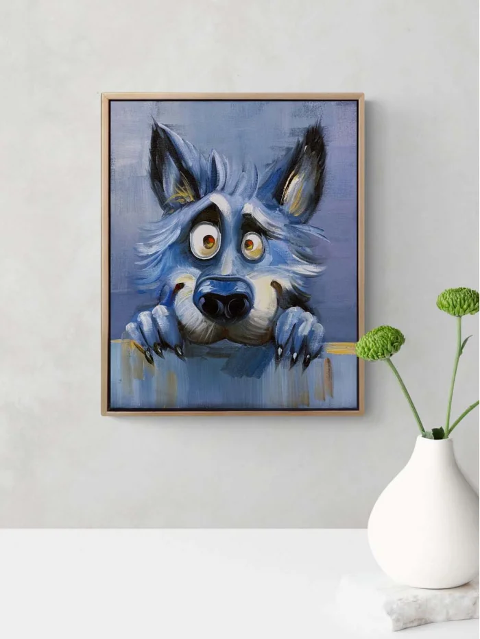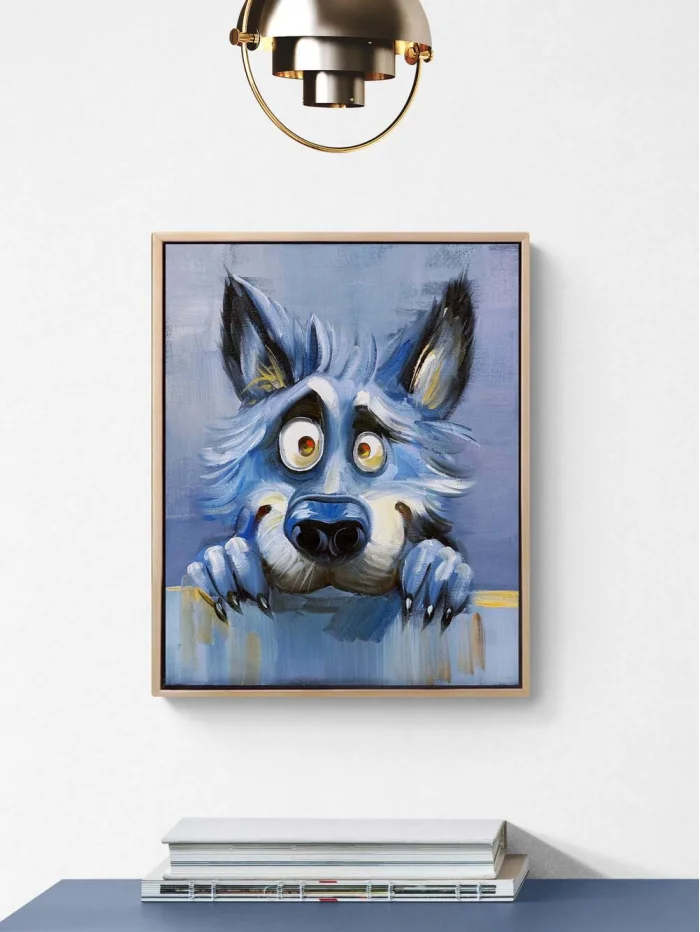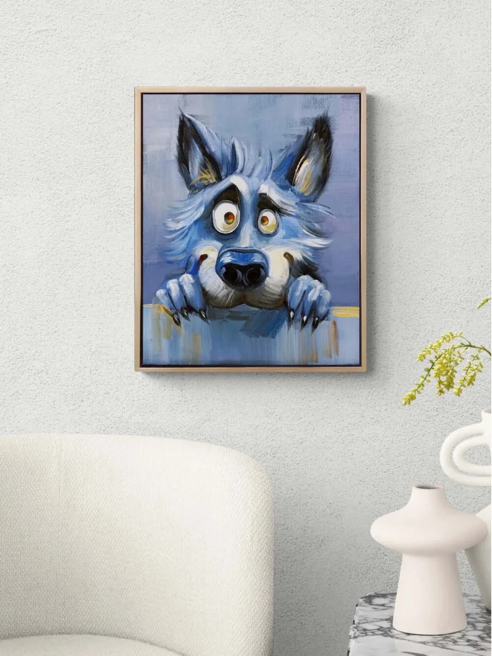 - The artworks are sent mounted with a steel hanging wire or D ring apparatus..