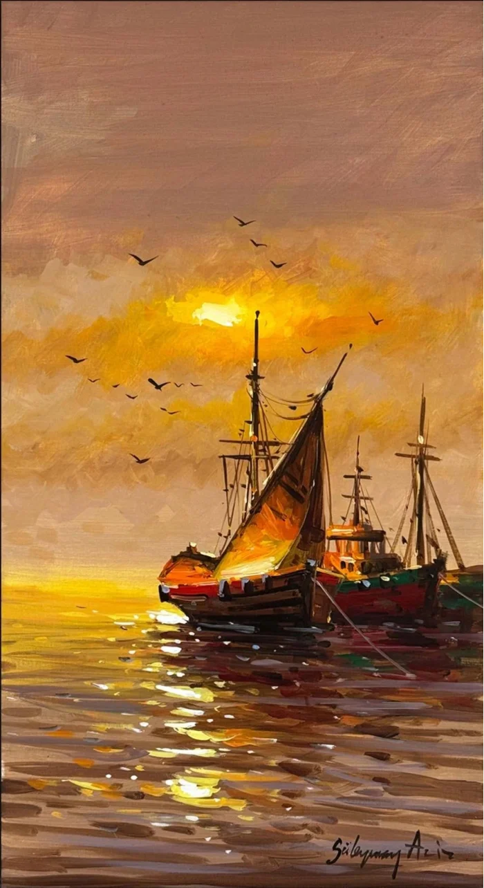 Eski İstanbul’un Tekneleri Yağlı Boya Tablosu
