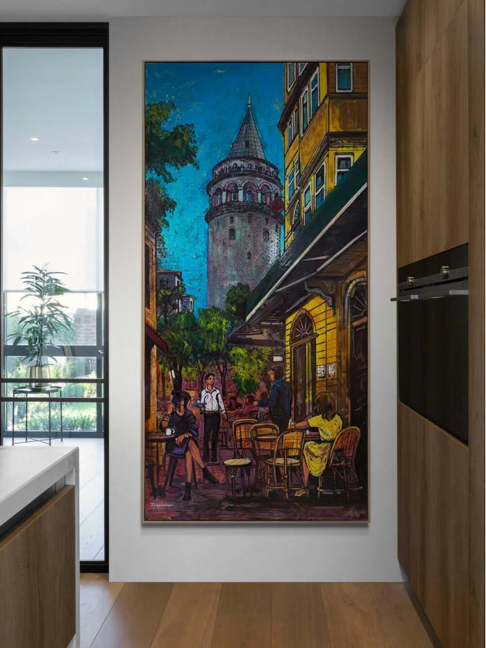 Galata’da Bir Akşam Sohbeti Yağlı Boya Tablosu