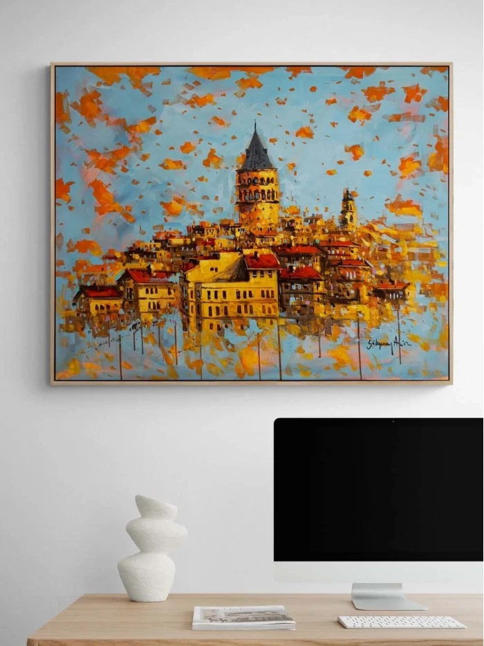 Galata'dan Manzarası Yağlı Boya Tablosu