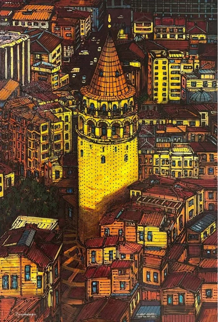 Galata'nın Işığında İstanbul Yağlı Boya Tablosu