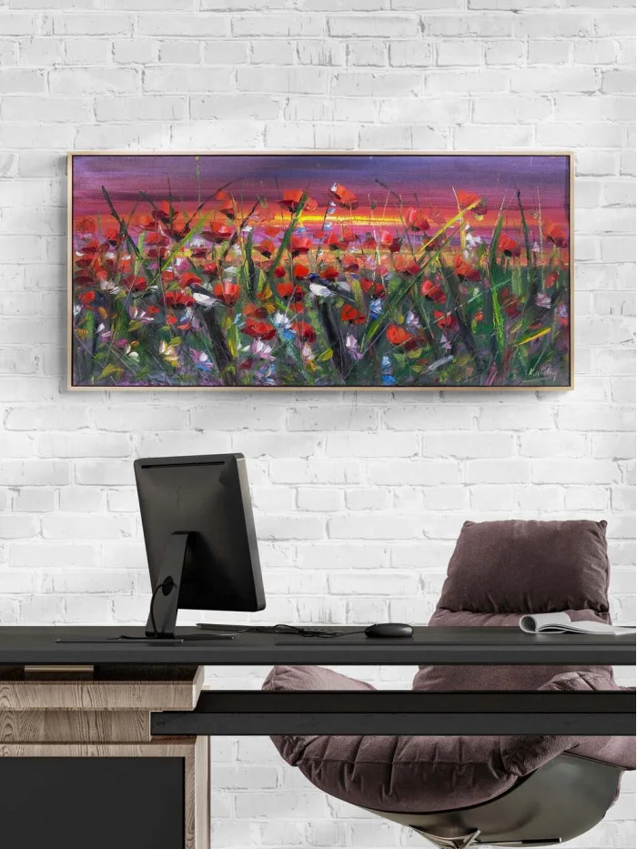 Gün Batımında Gelincikler Yağlı Boya Tablosu