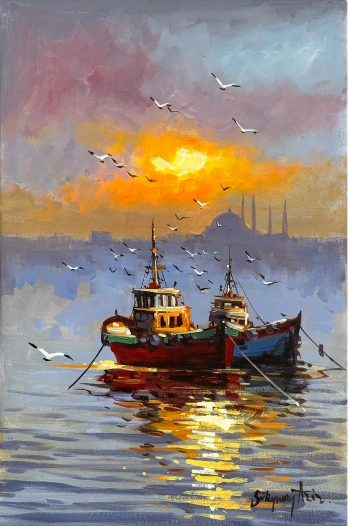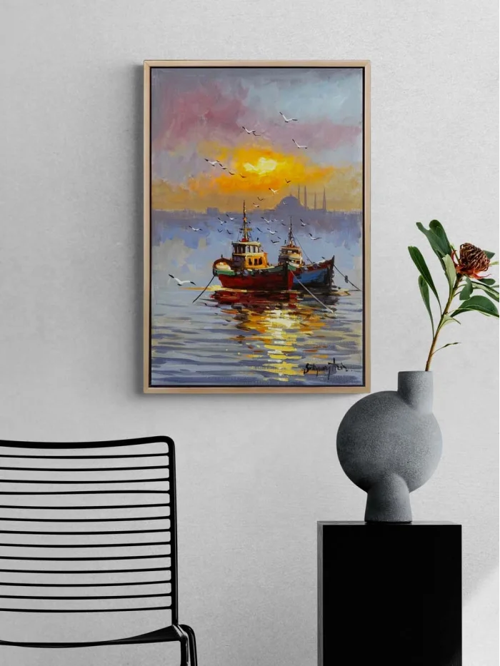 Haliç’te Son Işık Yağlı Boya Tablosu