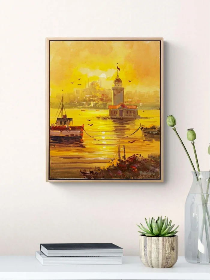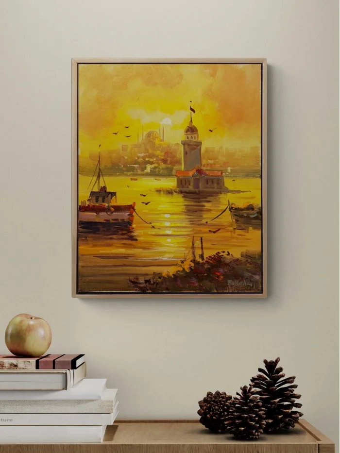Işığın Ardında Kız Kulesi Yağlı Boya Tablosu