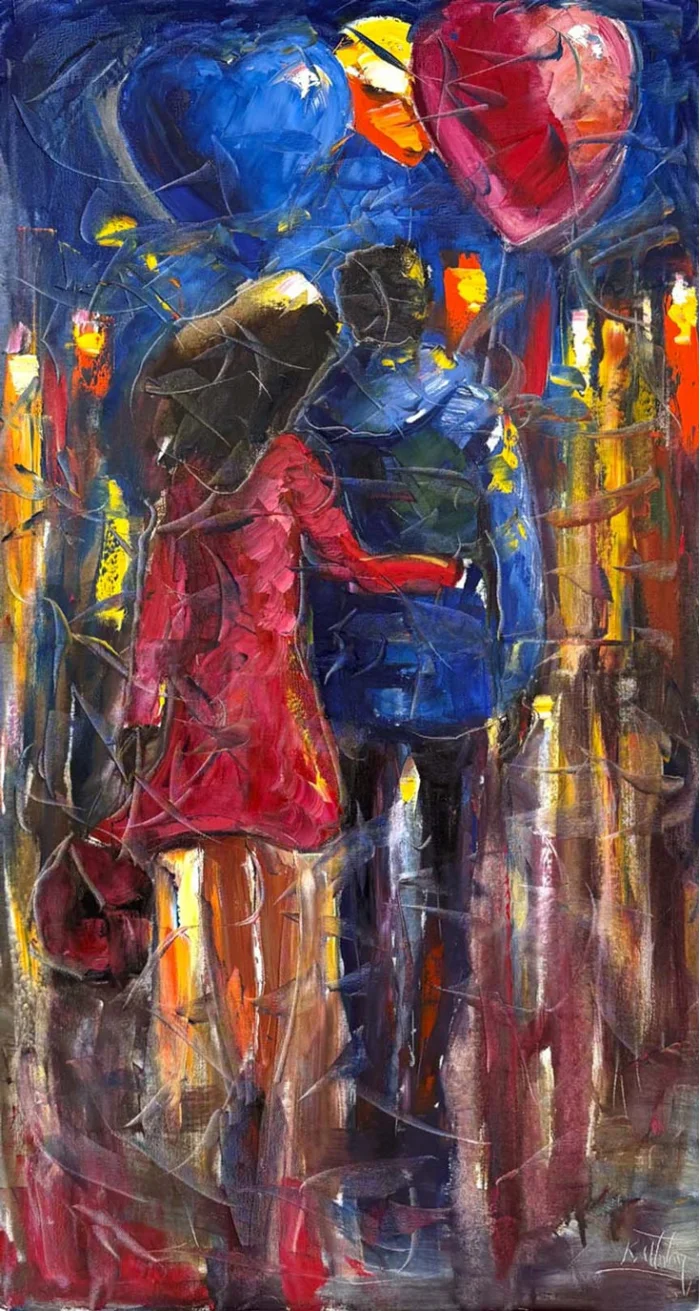 Kalpten Kalbe Yürürken Yağlı Boya Tablosu