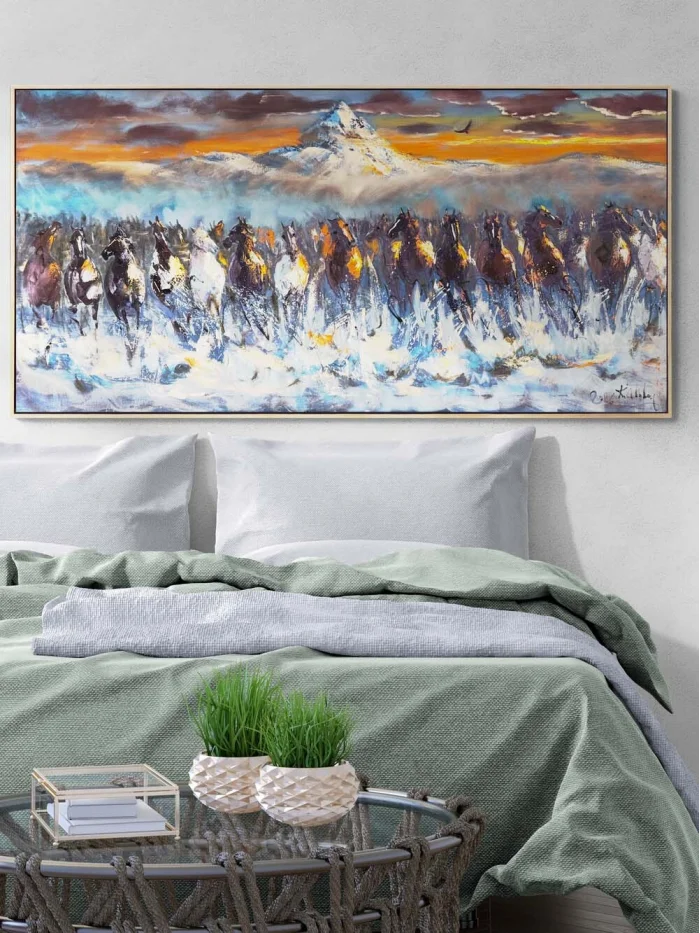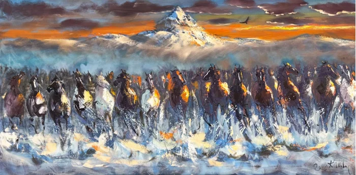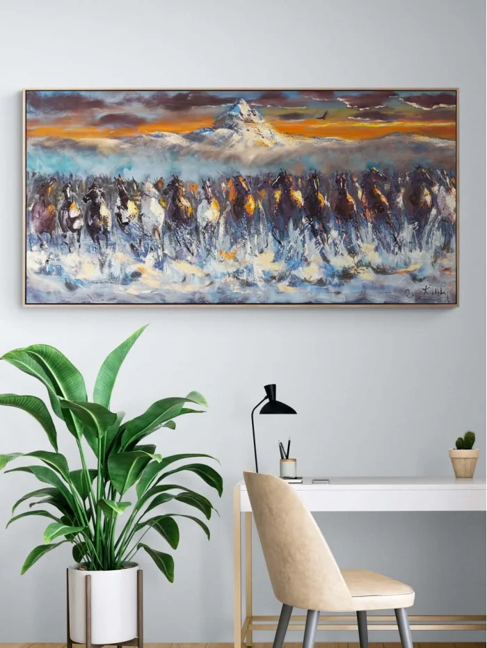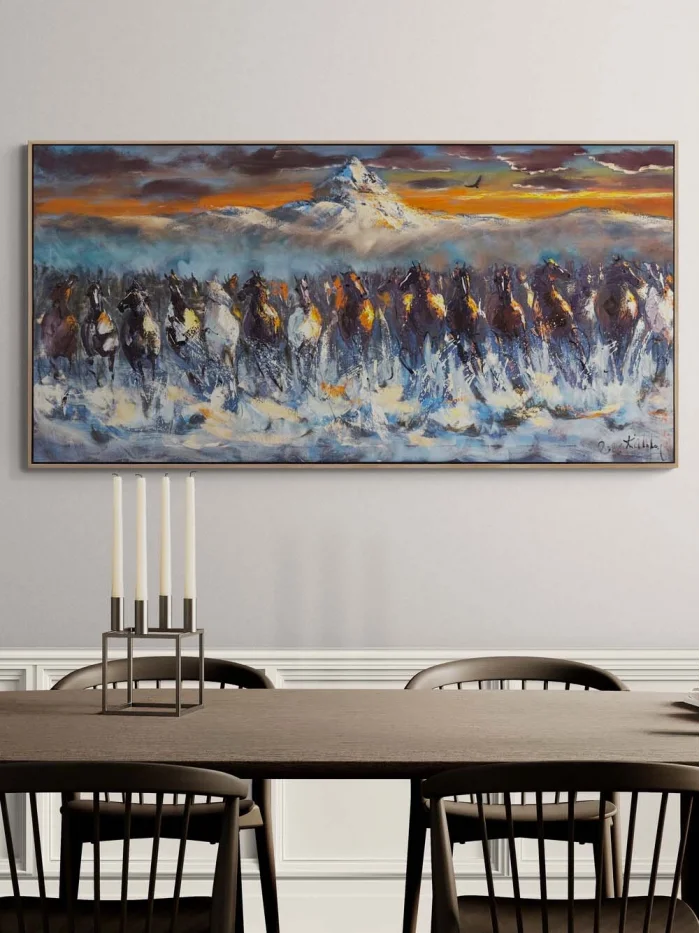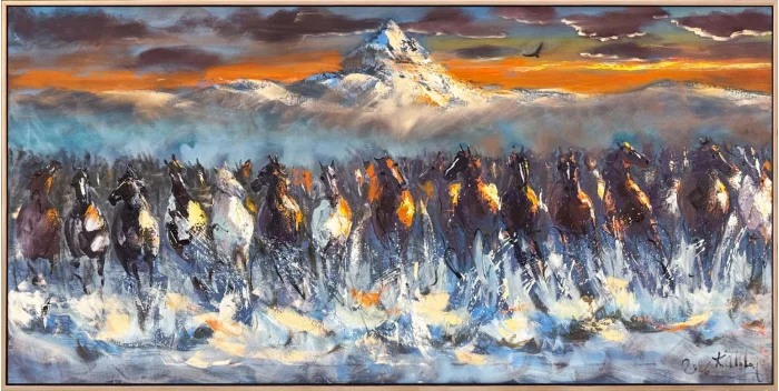 Karda Koşan Atlar Yağlı Boya Tablosu