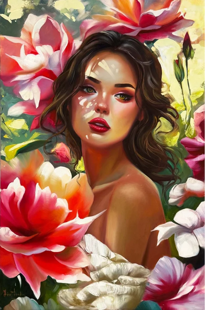 Kır Çiçeklerinin Kızı Yağlı Boya Tablosu
