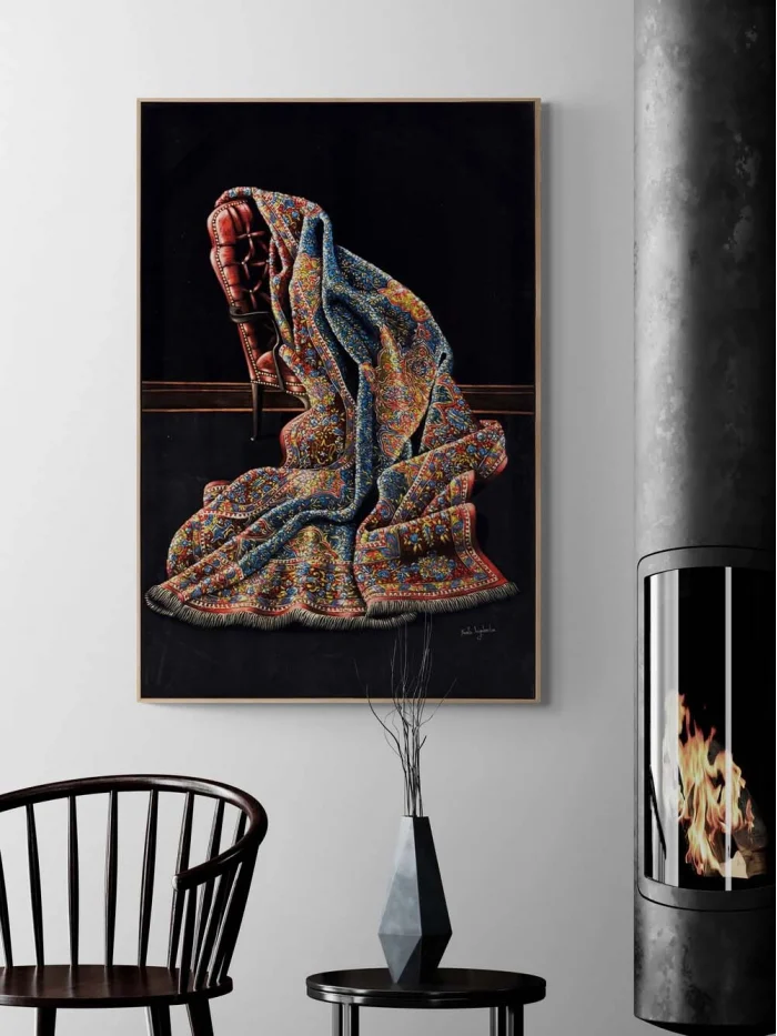 Kırmızı Koltuk ve Halı Yağlı Boya Tablosu