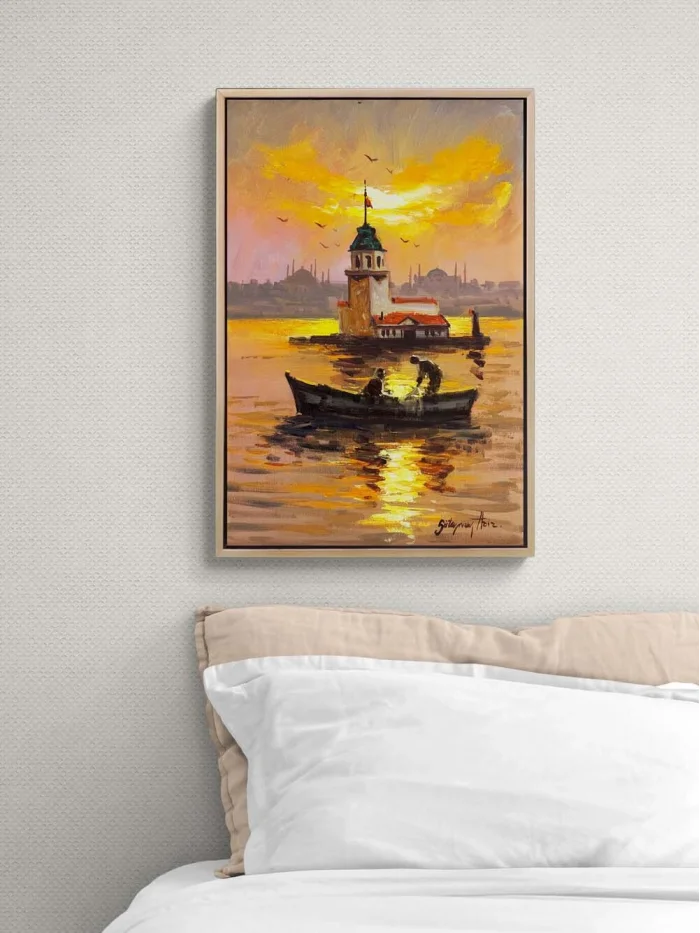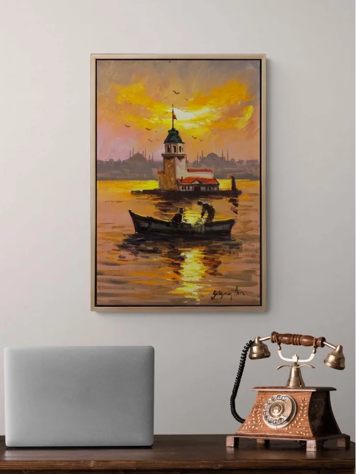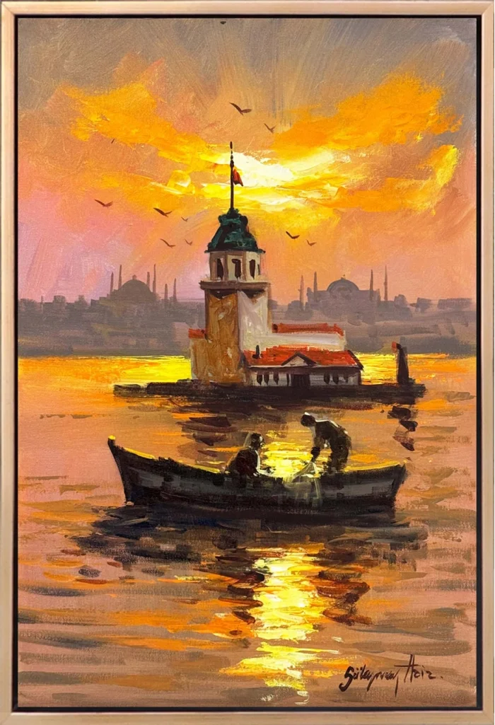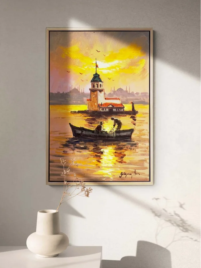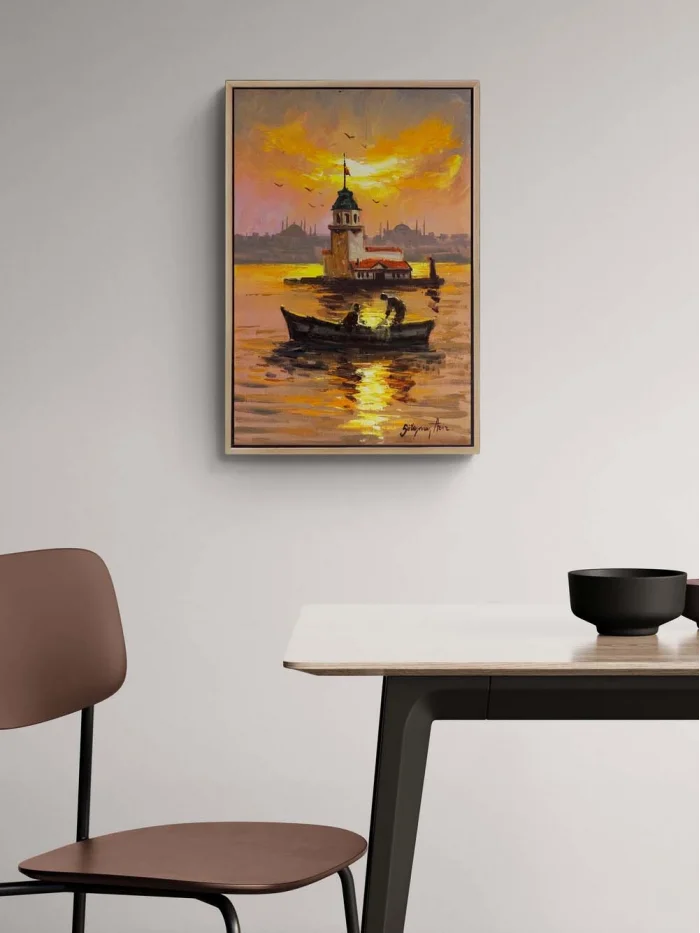 Kız Kulesi Turuncusu Yağlı Boya Tablosu