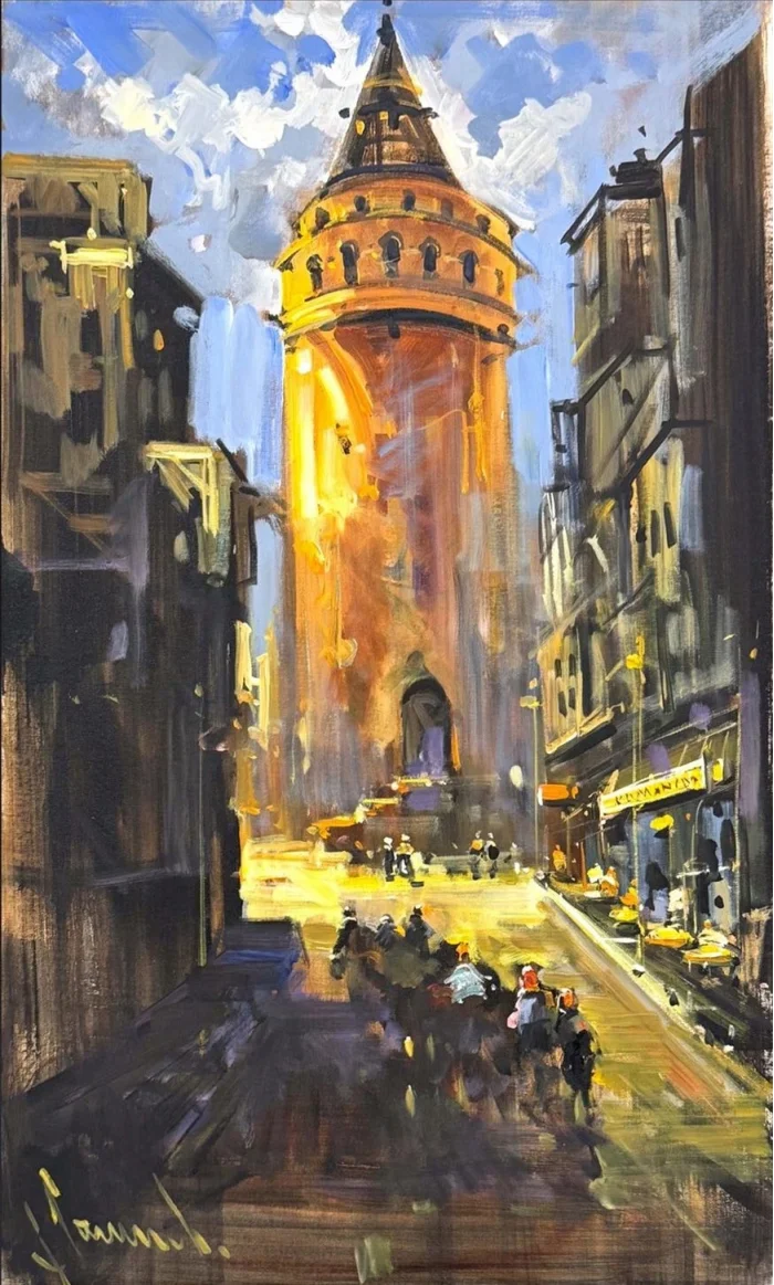 Kulenin Gölgesinde Sokaklar Yağlı Boya Tablosu