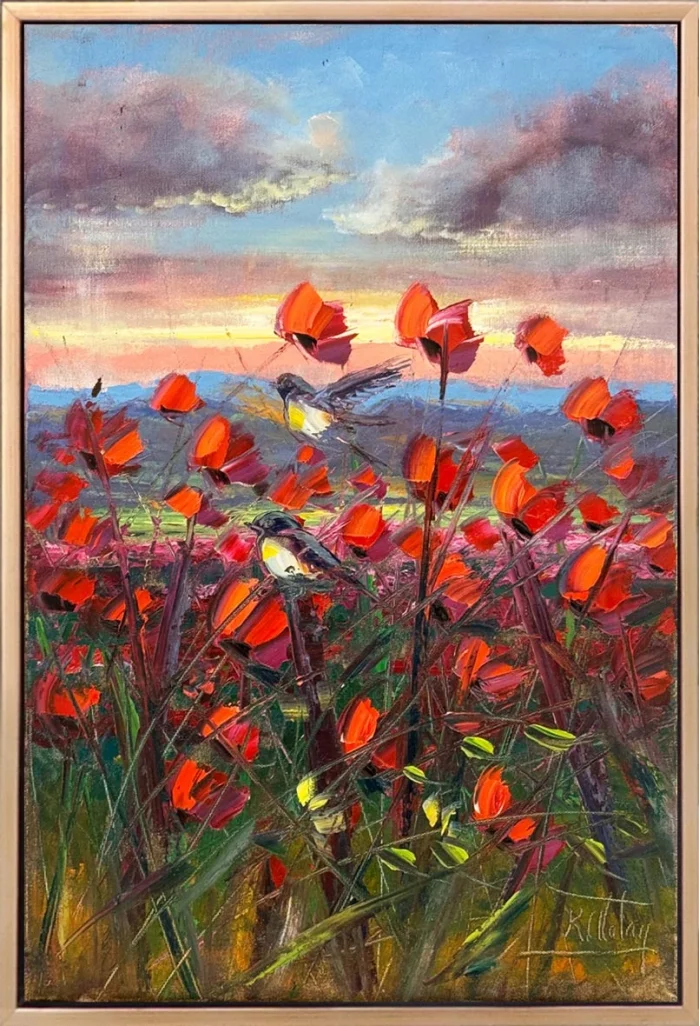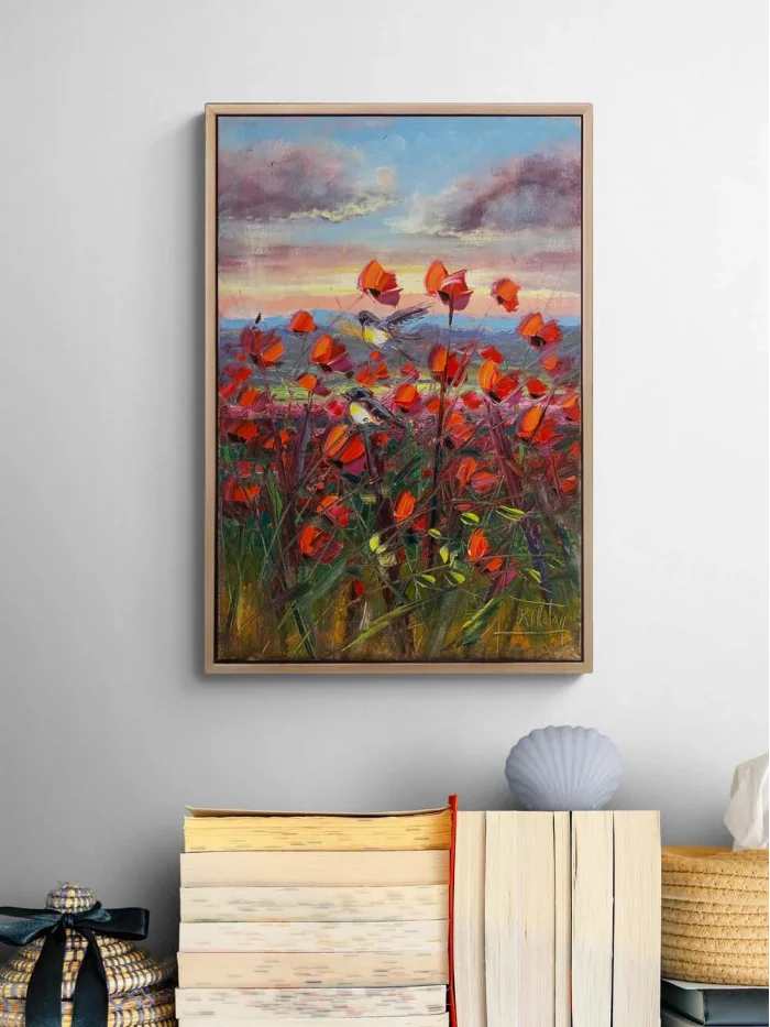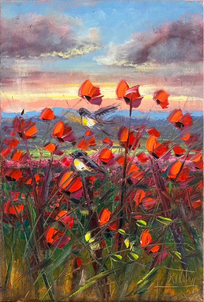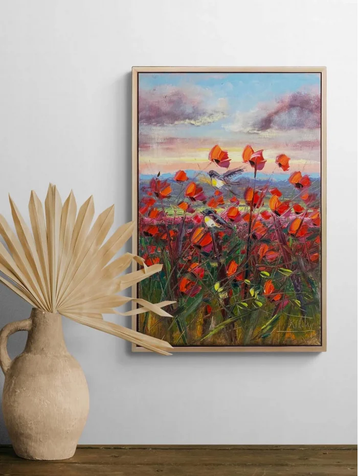 Kuşların Kırmızı Bahçesi Yağlı Boya Tablosu