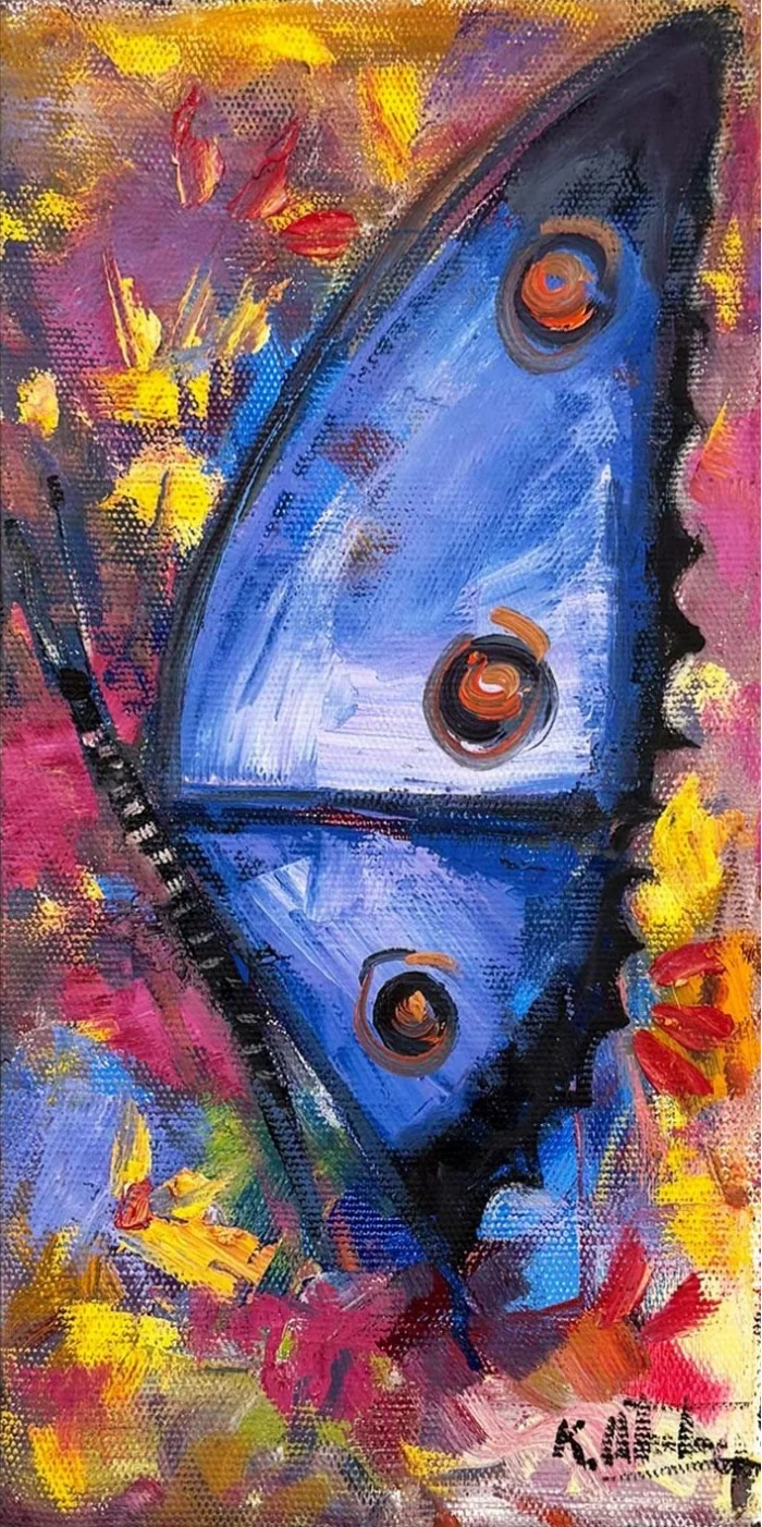 Mavi Bir Kelebek Yağlı Boya Tablosu