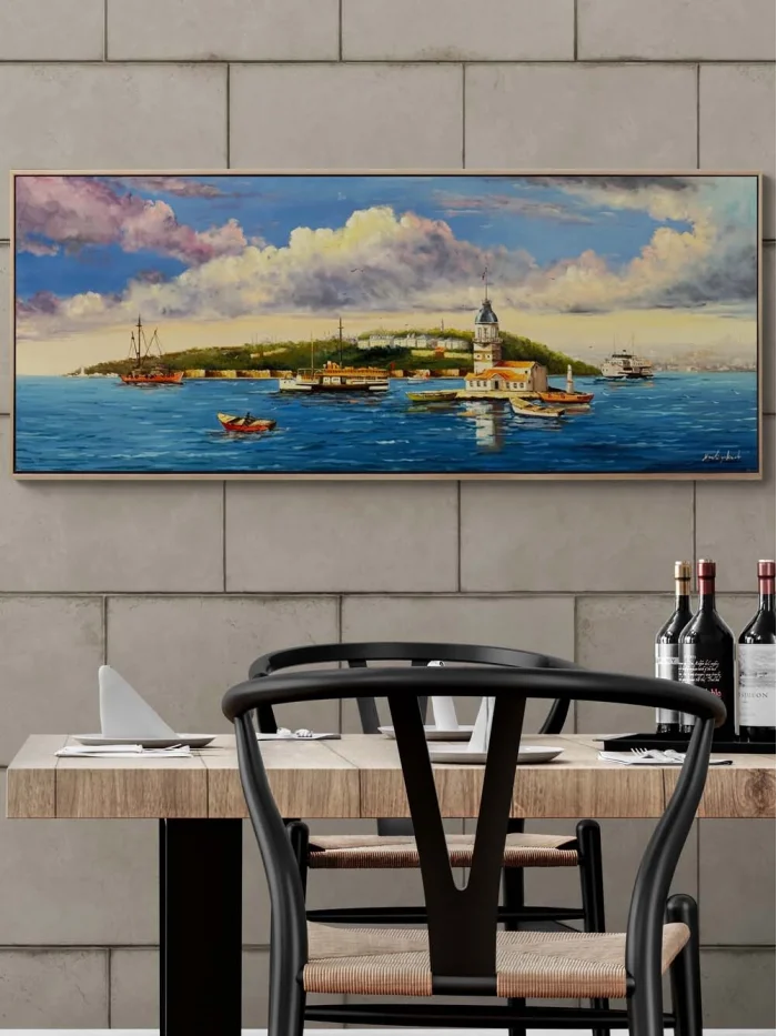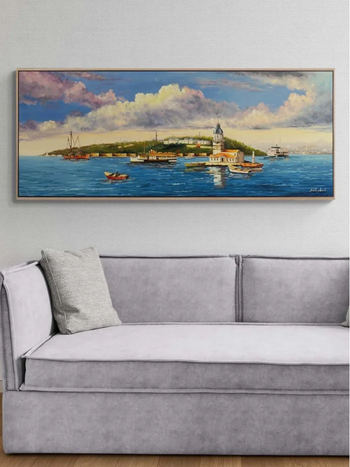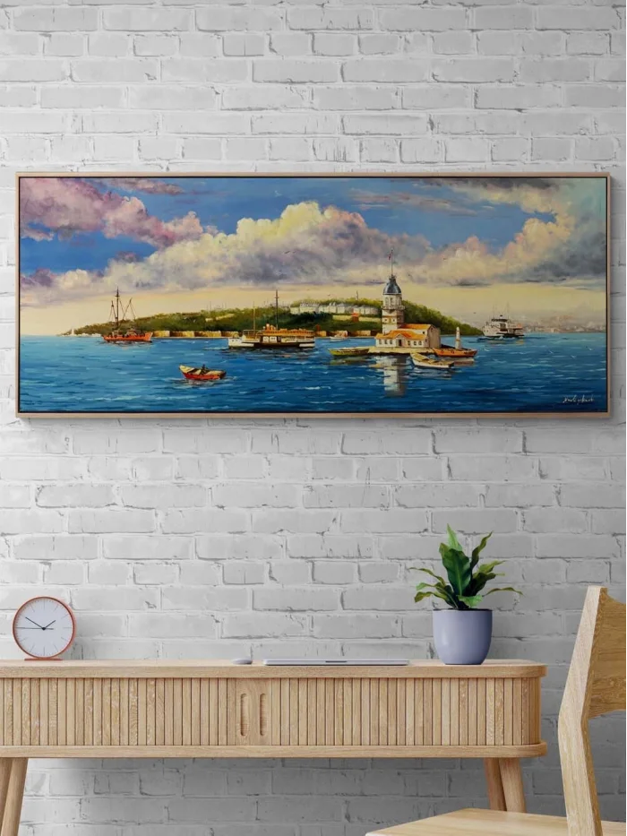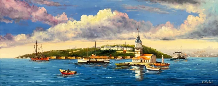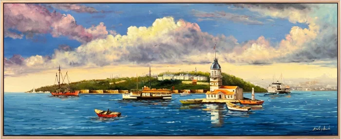 Maviyle Konuşan Kız Kulesi Yağlı Boya Tablosu
