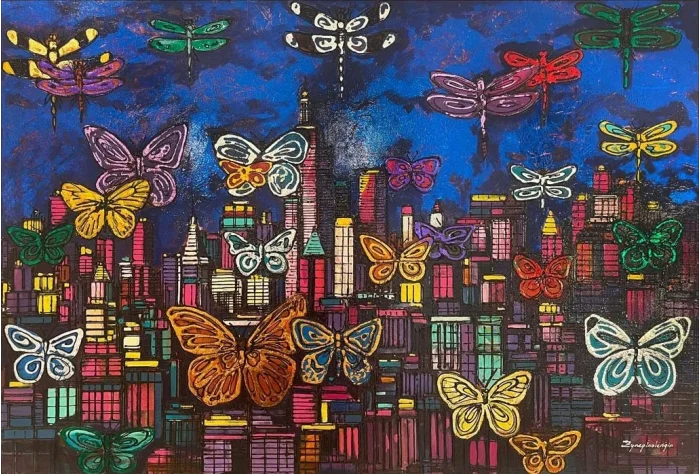 Modern Şehirin Kelebekleri Yağlı Boya Tablosu