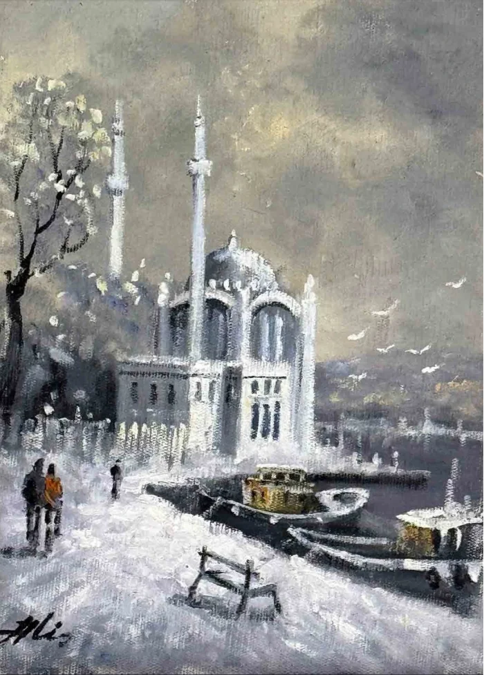 Ortaköy’de Kar Sessizliği Yağlı Boya Tablosu