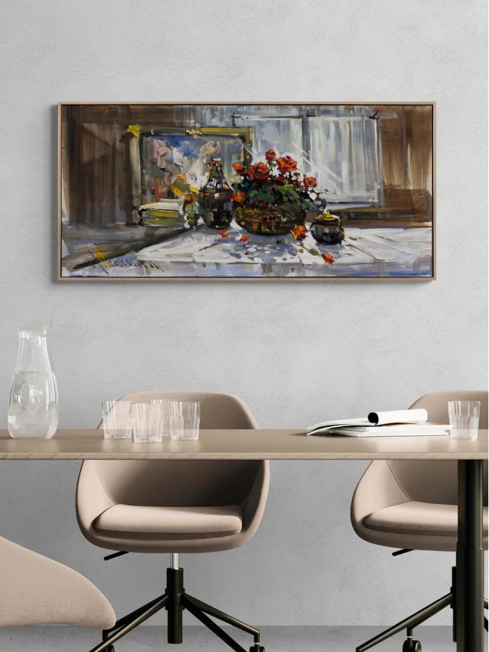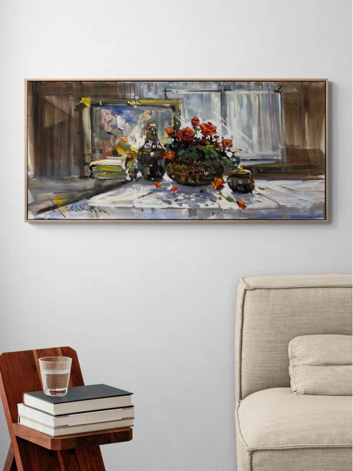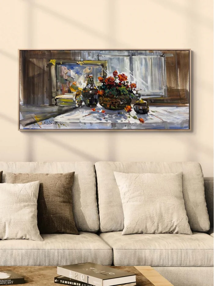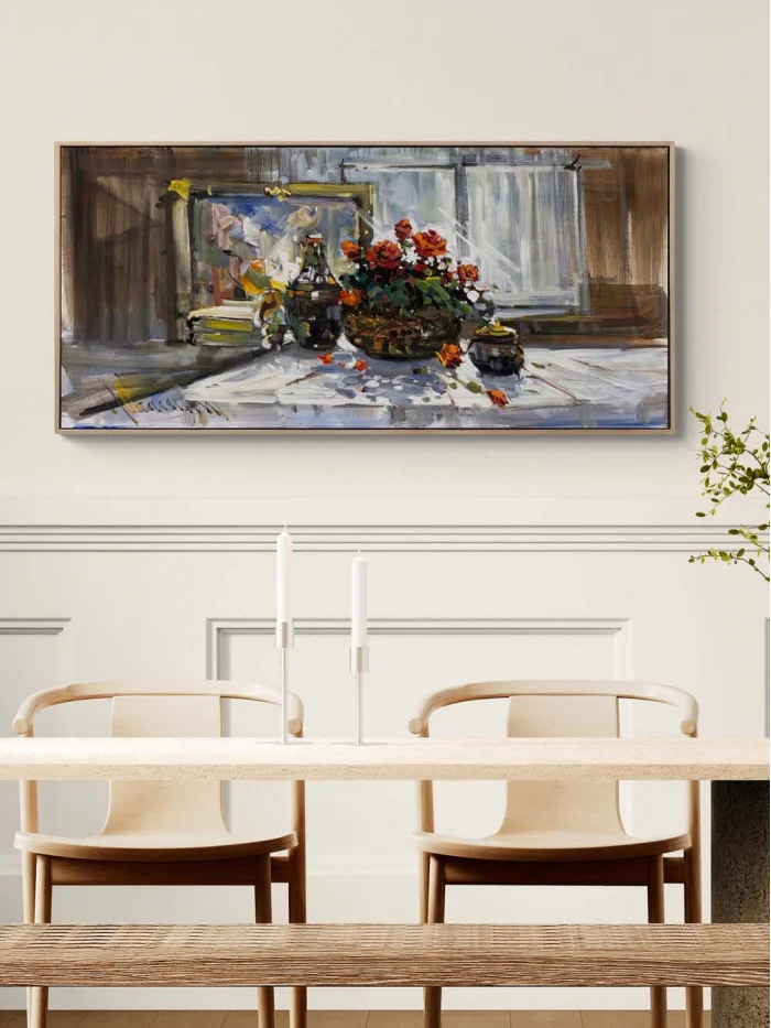 Pencere Önünde Güller Yağlı Boya Tablosu